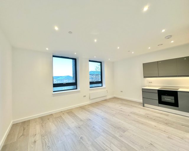 Step inside and enjoy the open-plan design with large double-glazed windows flooding the space with natural light. The modern kitchen features quartz worktops and integrated high-quality appliances, flowing seamlessly into the stylish living area – ideal for relaxing or entertaining. Both bedrooms are generous, with en suite to bedroom one and family bathroom finished to an excellent standard.