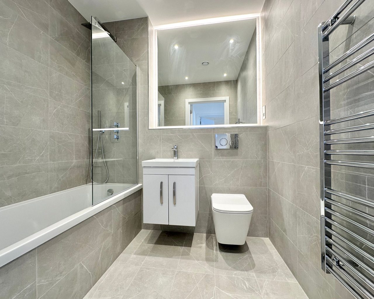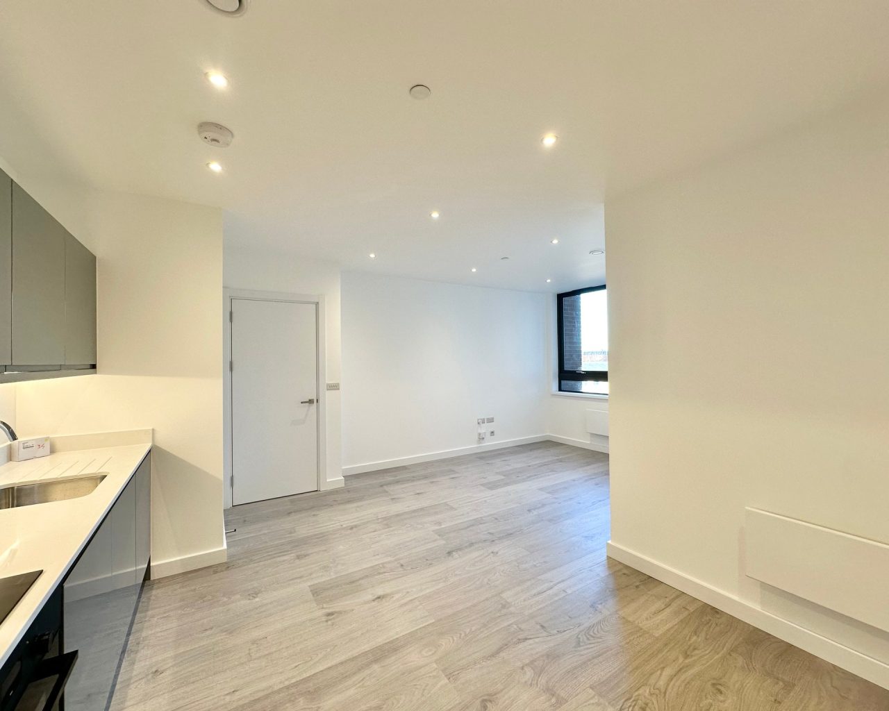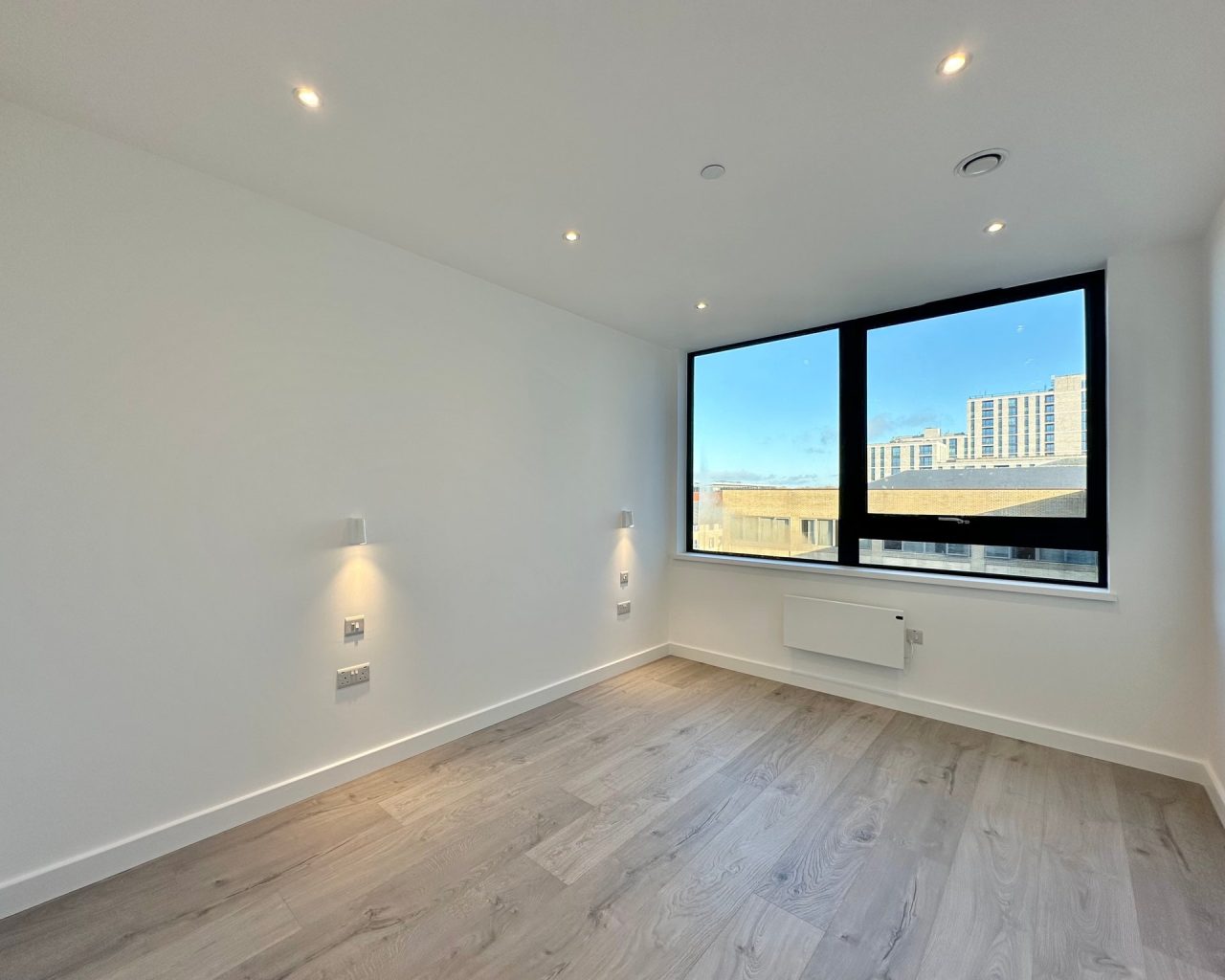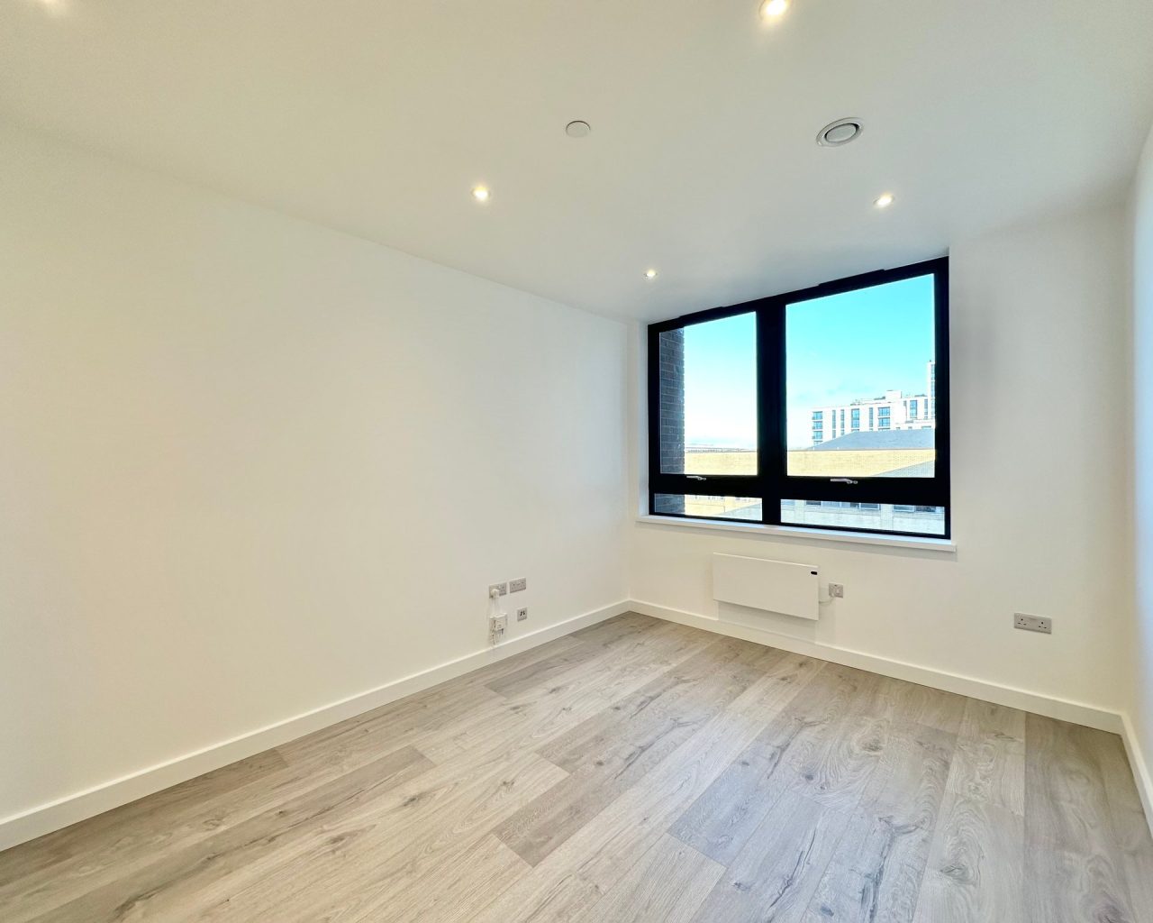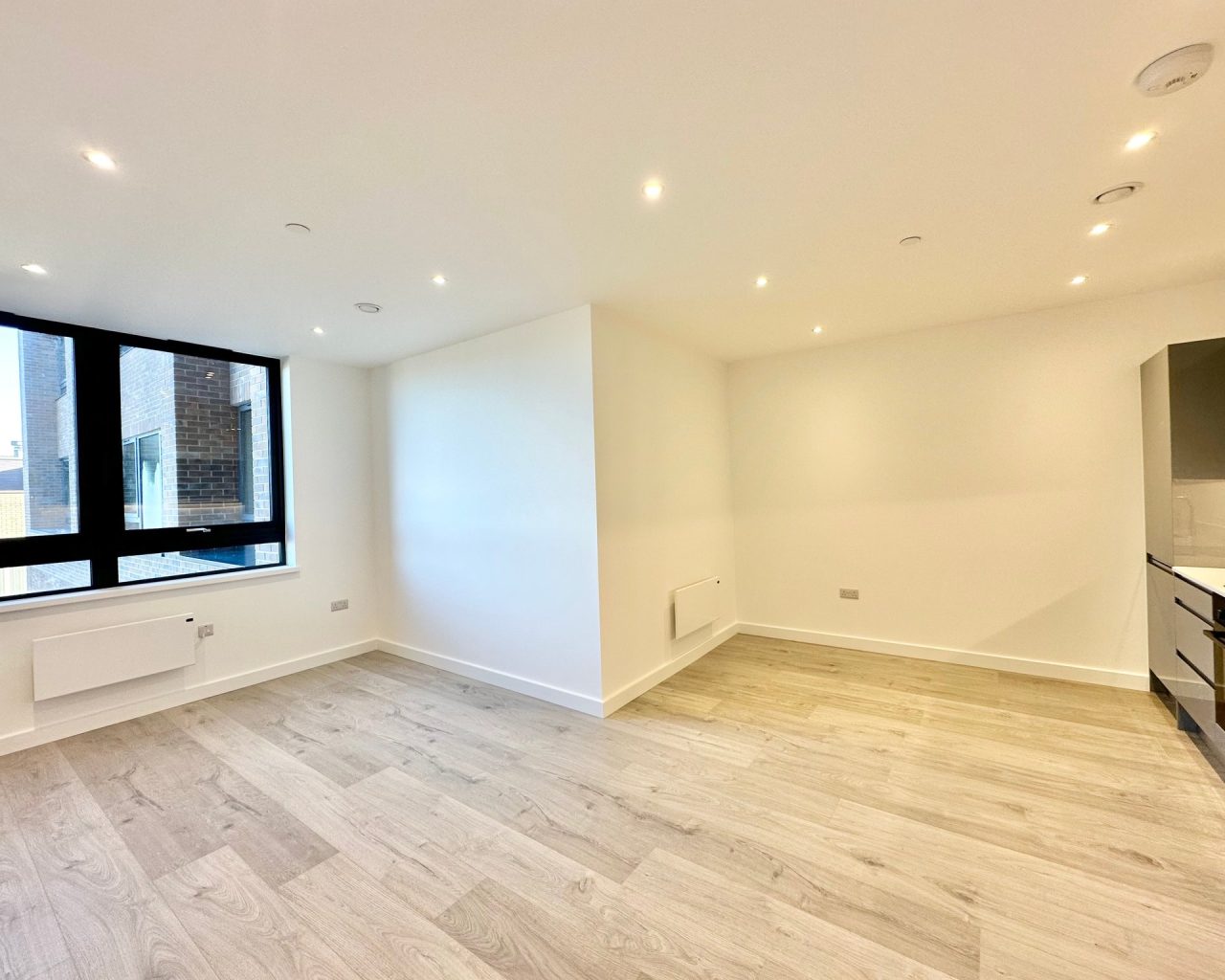 This brand new apartment has been thoughtfully designed to maximize space and light, featuring a spacious open-plan kitchen, dining, and living area with large windows that flood the space with natural light and views across central Milton Keynes. The contemporary kitchen comes complete with high-quality fittings, and the entire apartment is finished with high quality flooring and ultra-high ceilings that enhance the sense of openness and sophistication. The generously sized double bedroom offers a flexible layout. The main bathroom is fully tiled and features a shower-over-bath, heated towel rail, and a large LED-lit mirror, combining function with style.