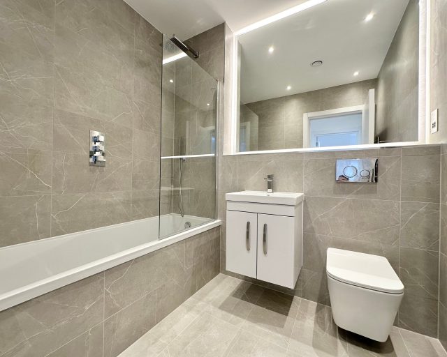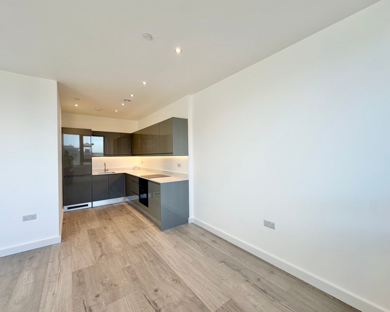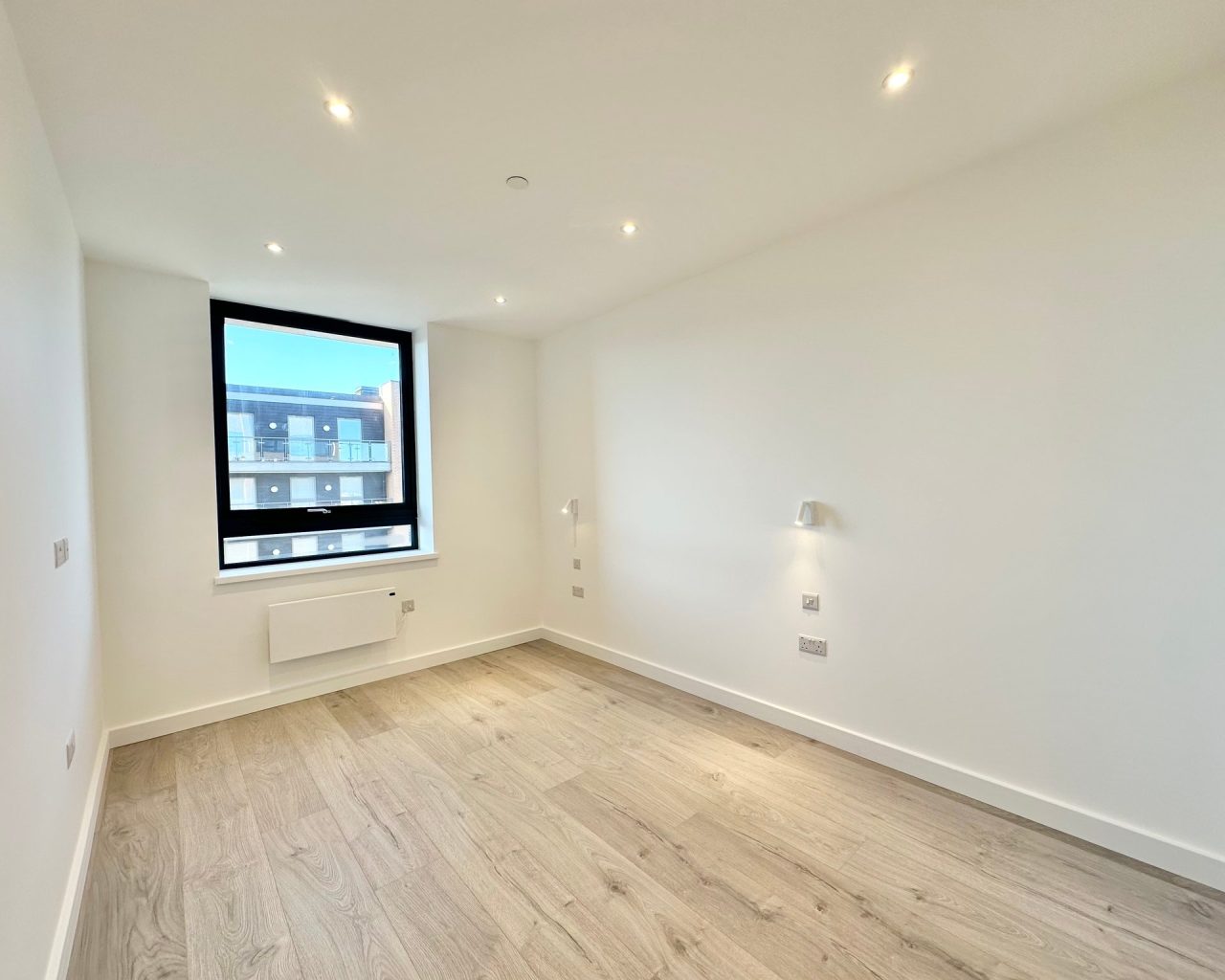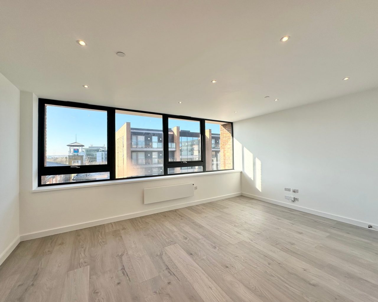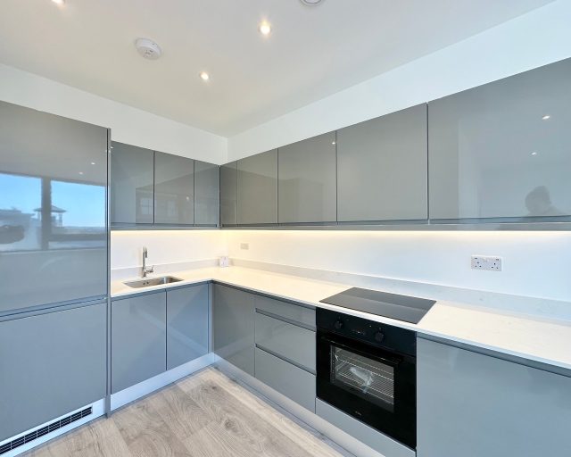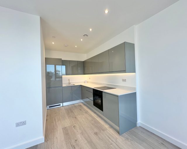 This brand new apartment has been thoughtfully designed to maximize space and light, featuring a spacious open-plan kitchen, dining, and living area with large windows that flood the space with natural light and views across central Milton Keynes. The contemporary kitchen comes complete with high-quality fittings, and the entire apartment is finished with high quality flooring and ultra-high ceilings that enhance the sense of openness and sophistication. The generously sized double bedroom offers a flexible layout. The main bathroom is fully tiled and features a shower-over-bath, heated towel rail, and a large LED-lit mirror, combining function with style.