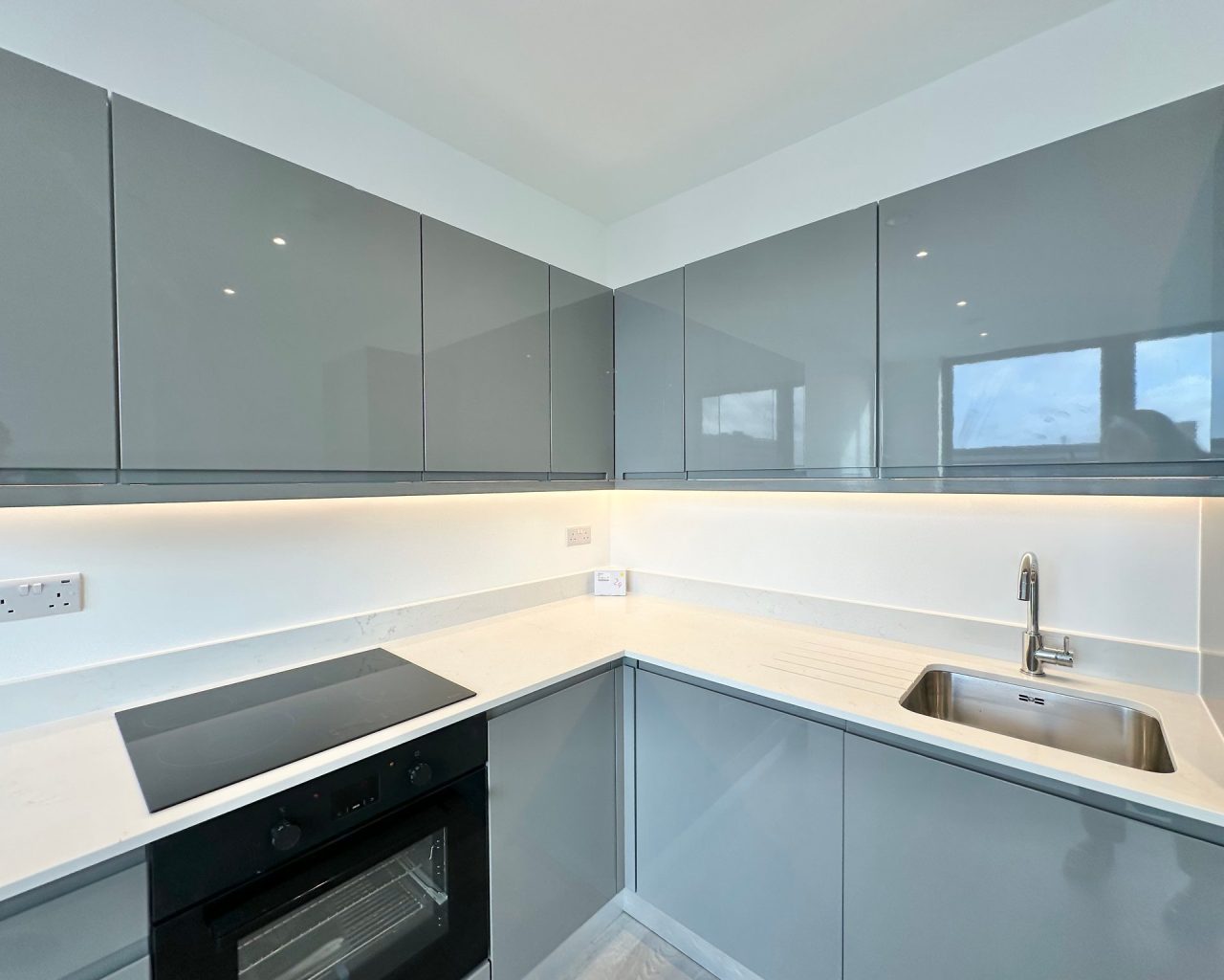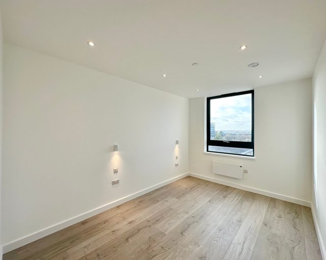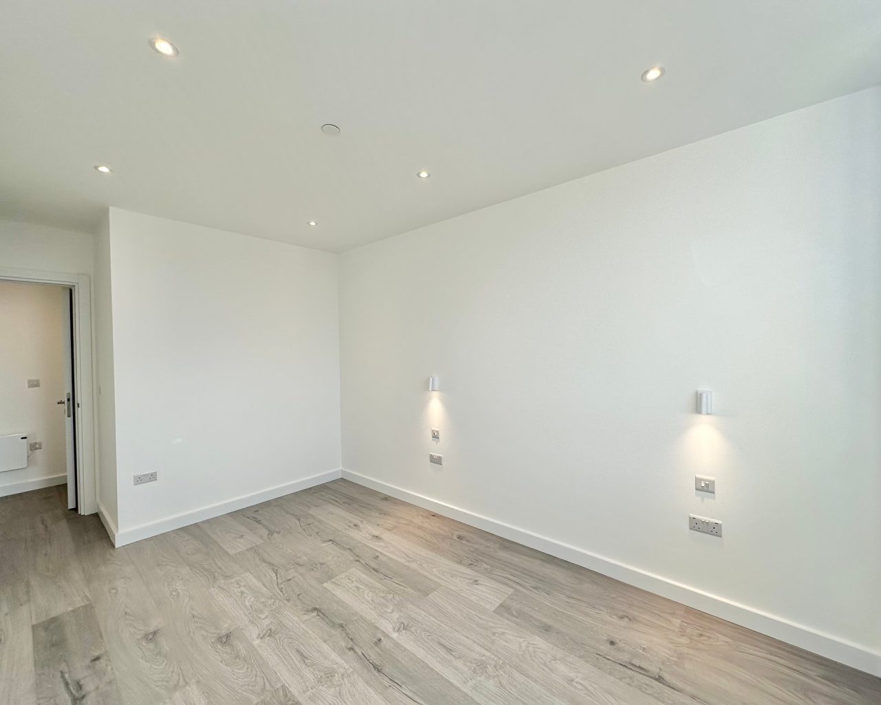 This brand new apartment has been thoughtfully designed to maximize space and light, featuring a spacious open-plan kitchen, dining, and living area with large windows that flood the space with natural light and views across central Milton Keynes. The contemporary kitchen comes complete with high-quality fittings, and the entire apartment is finished with high quality flooring and ultra-high ceilings that enhance the sense of openness and sophistication. The generously sized double bedroom offers a flexible layout. The main bathroom is fully tiled and features a shower-over-bath, heated towel rail, and a large LED-lit mirror, combining function with style.