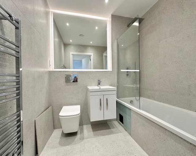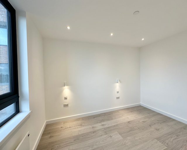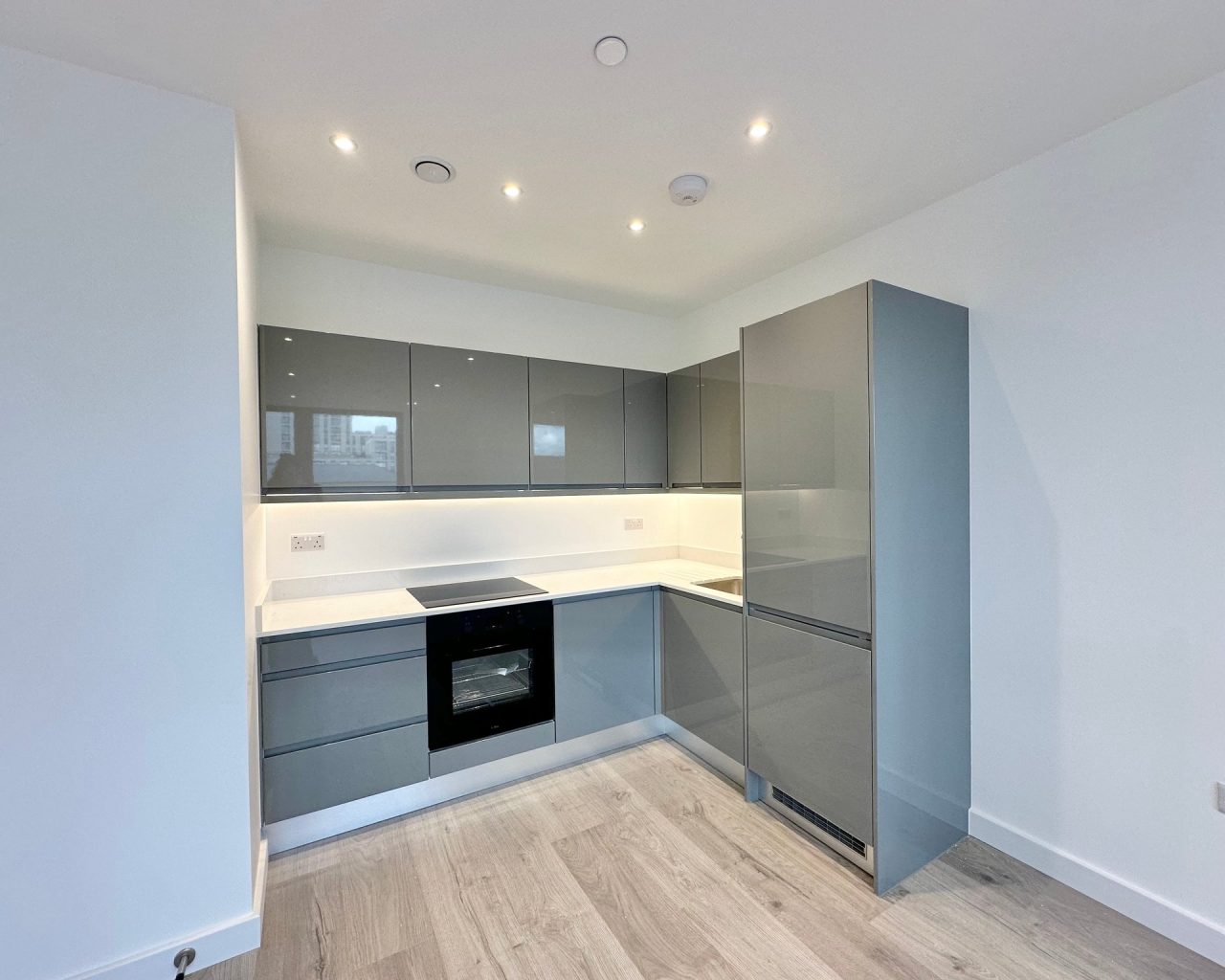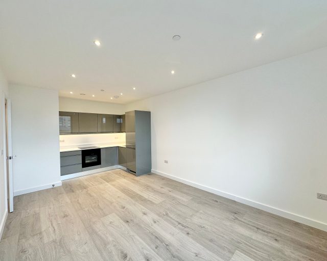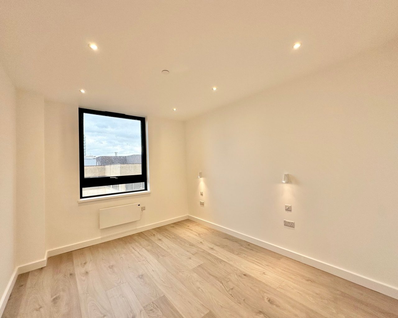 This brand new apartment has been thoughtfully designed to maximize space and light, featuring a spacious open-plan kitchen, dining, and living area with large windows that flood the space with natural light and views across central Milton Keynes. The contemporary kitchen comes complete with high-quality fittings, and the entire apartment is finished with high quality flooring and ultra-high ceilings that enhance the sense of openness and sophistication. The generously sized double bedroom offers a flexible layout. The main bathroom is fully tiled and features a shower-over-bath, heated towel rail, and a large LED-lit mirror, combining function with style.
