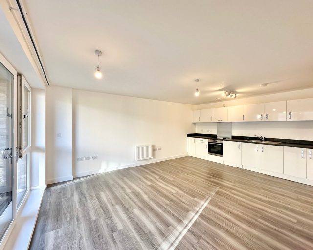 In short the property comprises of entrance hall, storage cupboard, bedroom one with en suite and fitted wardrobes, second double bedroom, family bathroom and open plane kitchen/ living area with access to balcony.