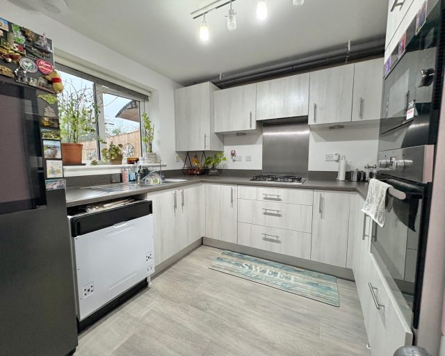 Brief internal accommodation comprises an entrance hallway, living room, kitchen/diner and downstairs cloakroom/utility room. The first floor offers three bedrooms, family bathroom and en-suite. Externally there is a private rear garden and driveway for two with an EV charger.