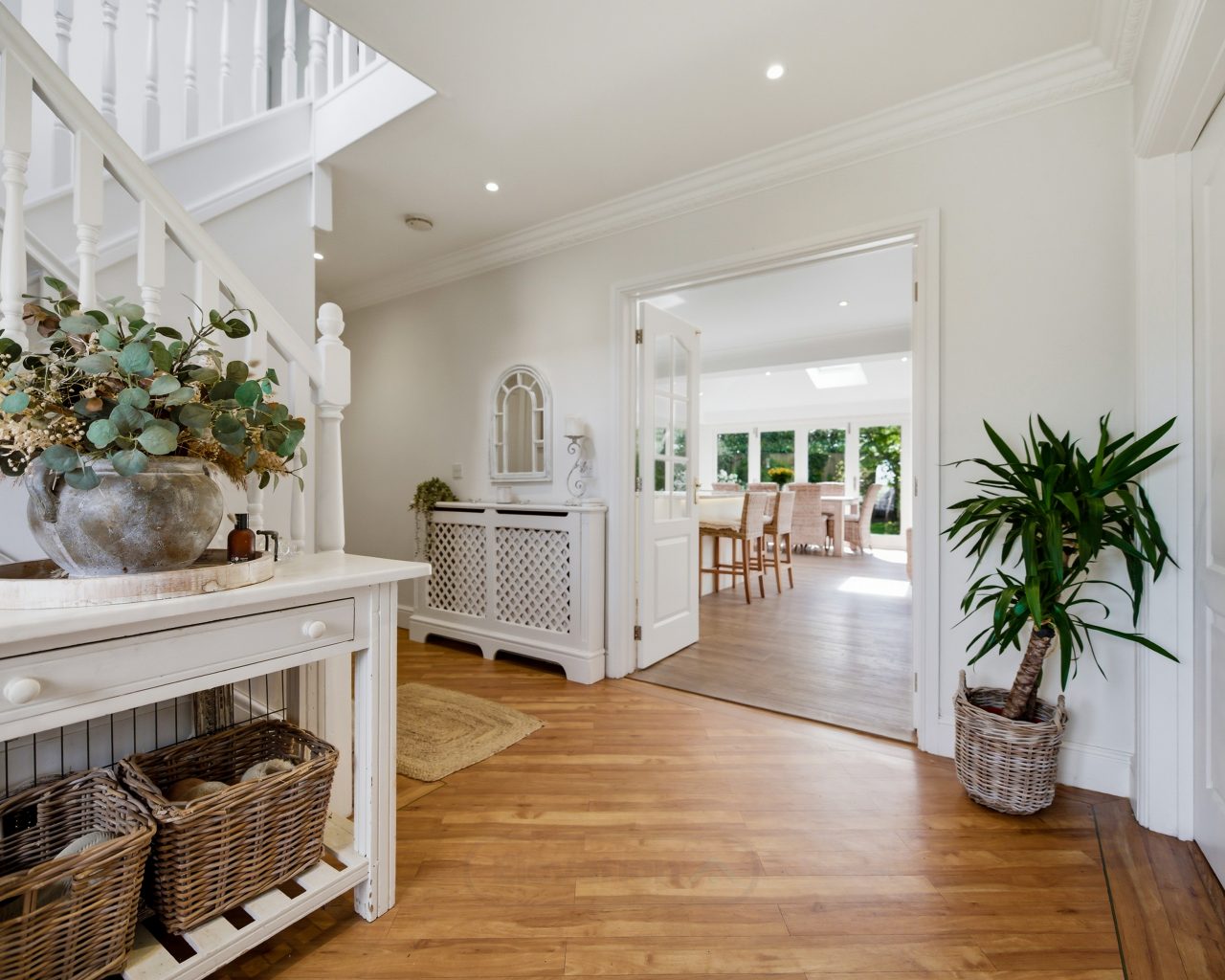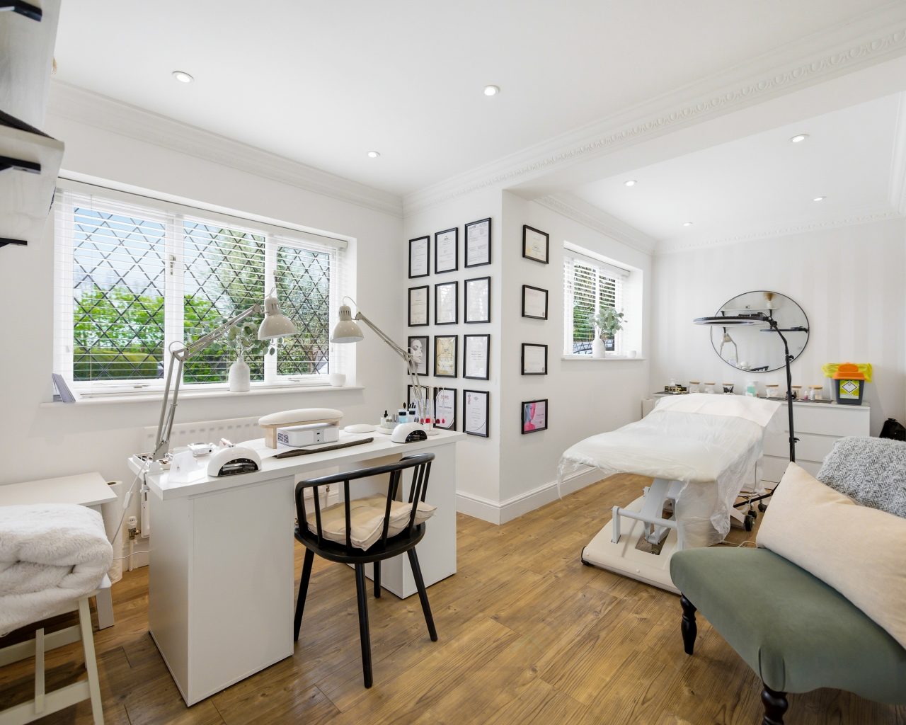 Adding to the home’s versatility is a cleverly converted former double garage, now presented as a beautiful treatment room. This flexible space could easily be adapted to suit a variety of needs—whether as a separate dining room, additional lounge, playroom, or even a home gym. A convenient downstairs cloakroom completes the ground floor.