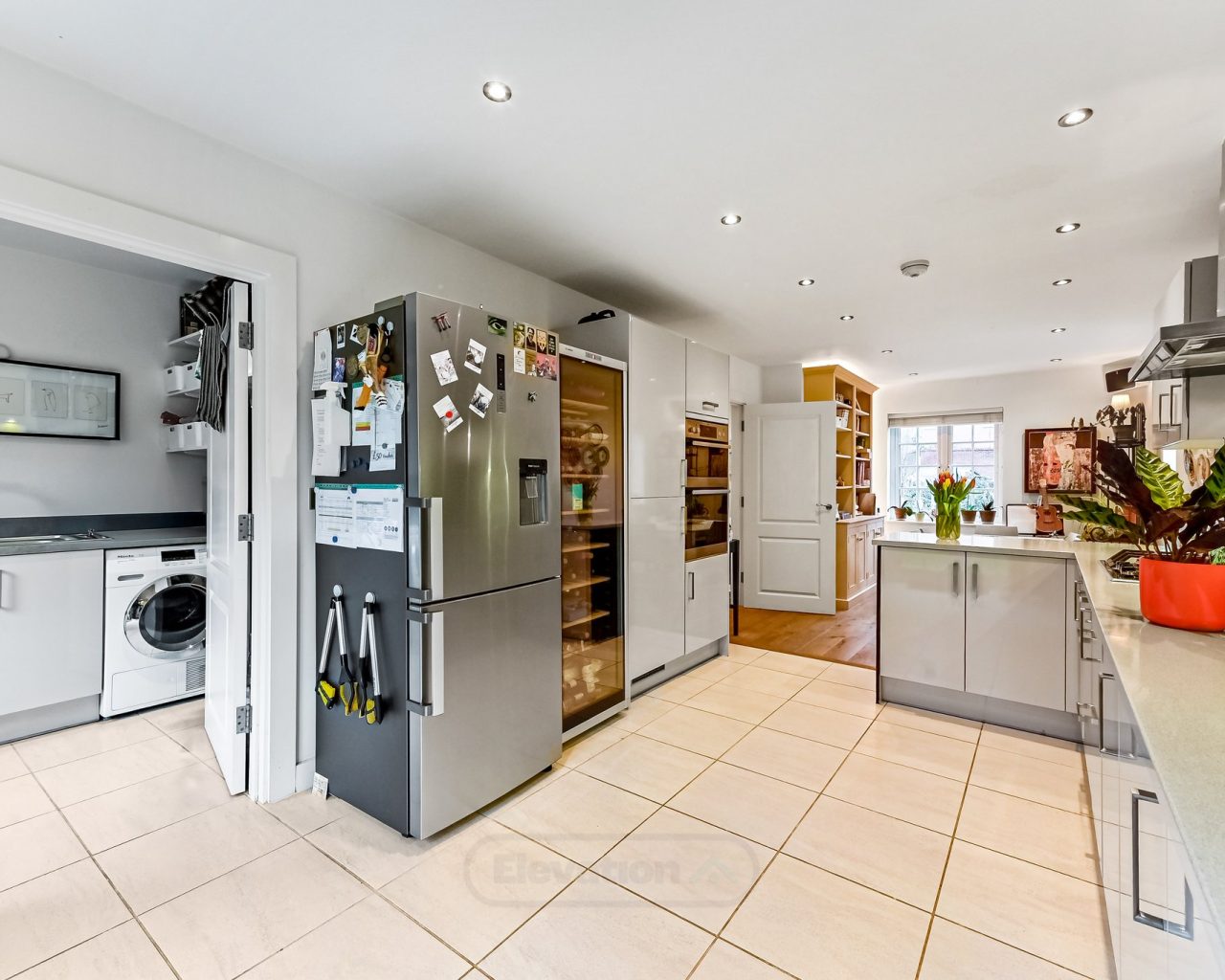 The ground floor accommodation comprises a welcoming entrance hall, cloakroom, sitting room, a spacious kitchen/dining room ideal for family life and entertaining, and a separate utility room. The original garage has been thoughtfully converted to provide additional gym/office space, offering excellent flexibility for home working or hobbies. On the first floor there is a landing serving bedroom one with en suite shower room, bedroom two with en suite shower room, and bedroom five.