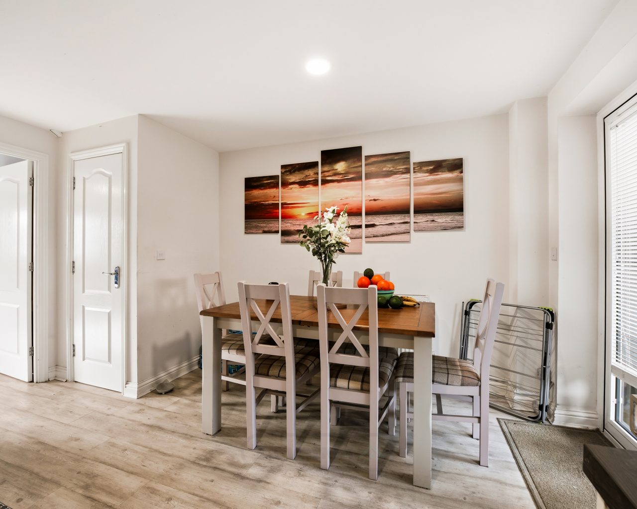 Outside, the rear garden has been thoughtfully landscaped for low-maintenance enjoyment, providing a pleasant space to relax or dine alfresco. To the front of the property are two allocated parking spaces, offering valuable off-road parking