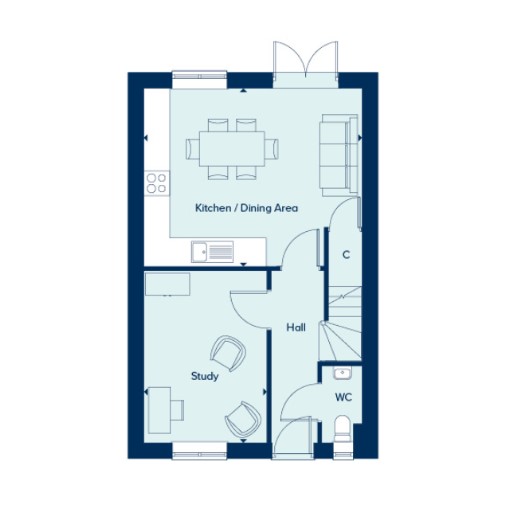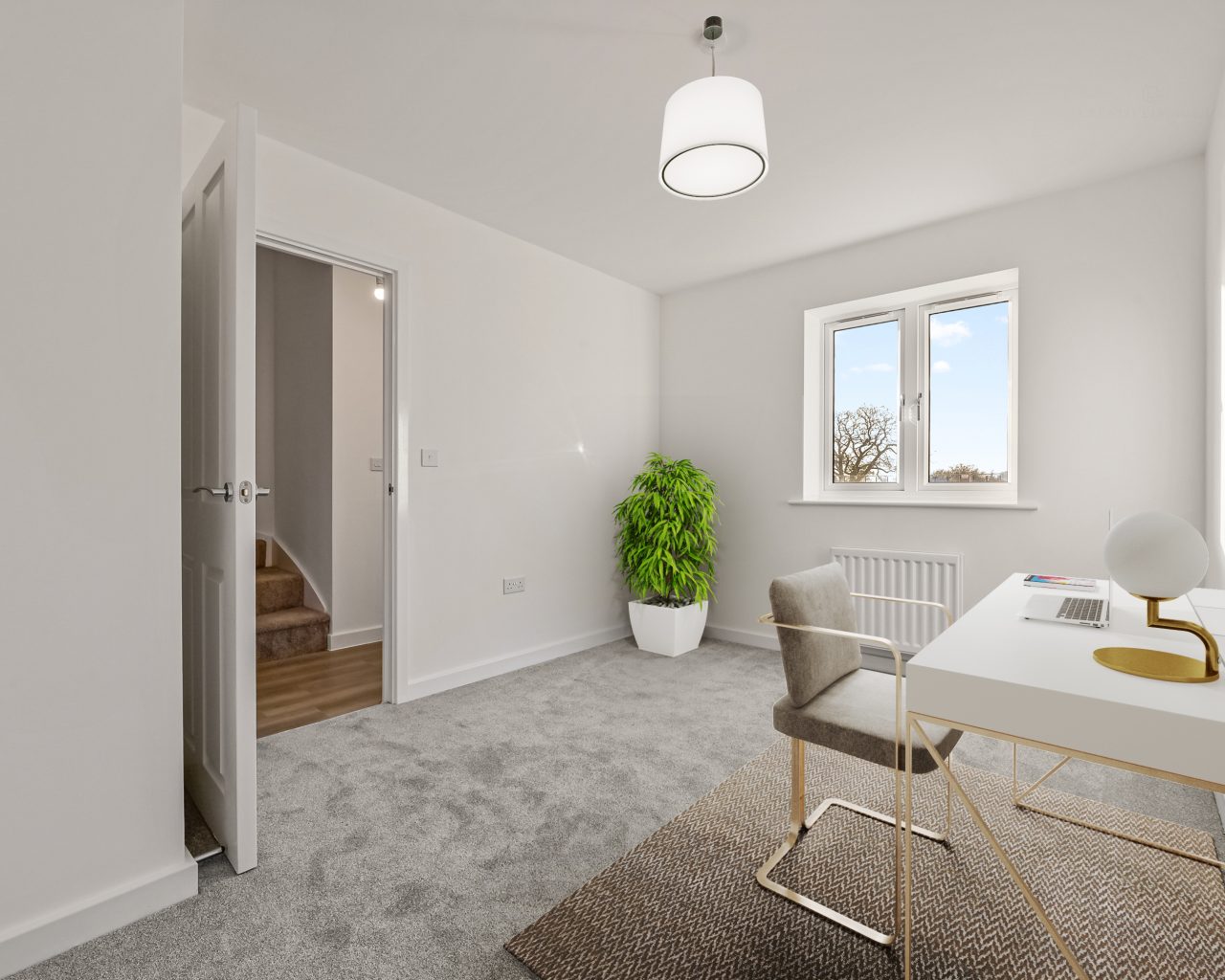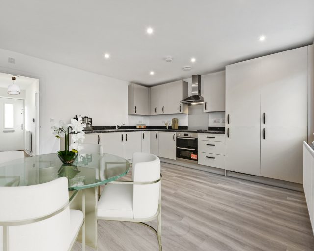 The Hexham by Crest Nicholson is a versatile three-storey, four-bedroom home designed for modern family living. The ground floor features an open-plan kitchen and dining area with French doors to the garden, alongside a separate living room/ study and cloakroom. On the first floor, there is a spacious main bedroom with an en-suite and fitted wardrobe, plus a second reception room or additional bedroom. The top floor offers three further bedrooms and a family bathroom, providing flexible space for children, guests, or a home office. With thoughtful storage, integrated kitchen appliances, and energy-efficient features, the Hexham combines practicality with contemporary comfort.