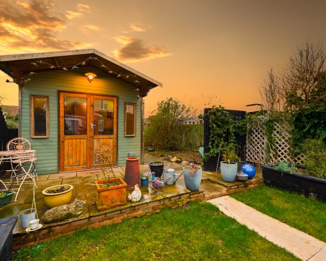 Externally, the property truly stands out. The exceptionally large rear garden provides a wonderful outdoor lifestyle, featuring a paved seating area, a fully powered summer house, a separate workshop with electrics, and an allotment area—perfect for keen gardeners or those seeking a self-sufficient lifestyle.