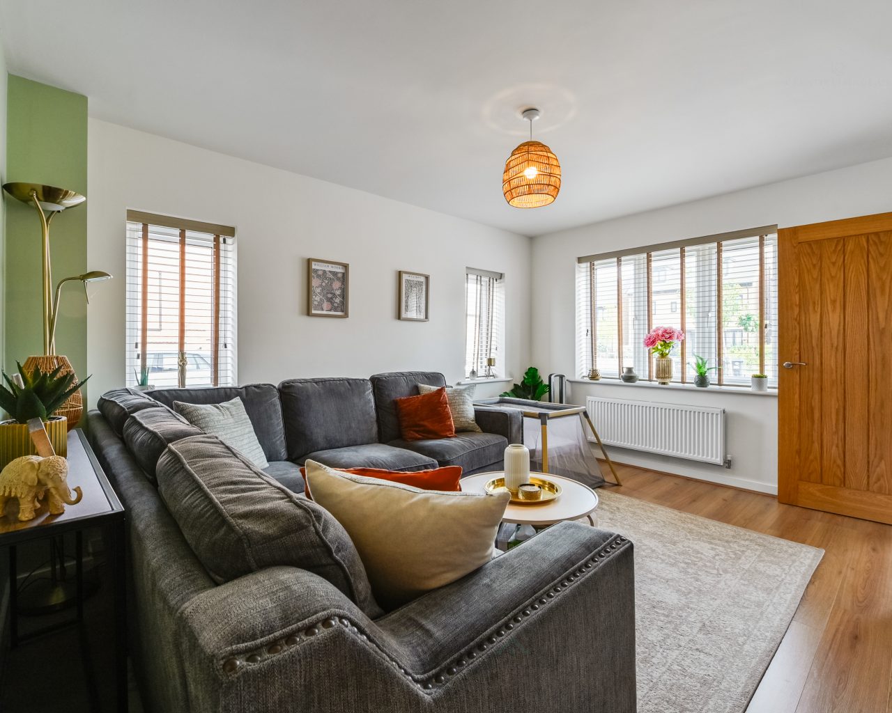 - Bright and spacious living room – front-facing window plus two side windows for natural light