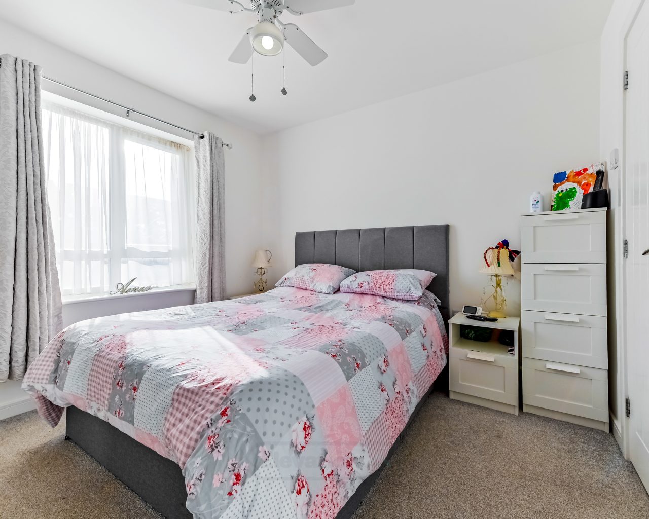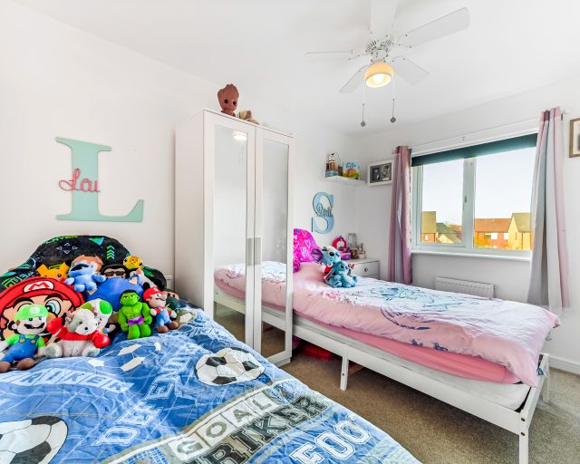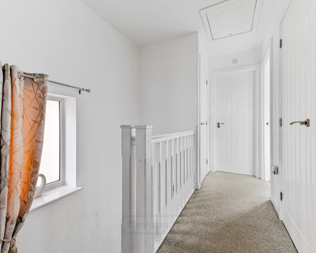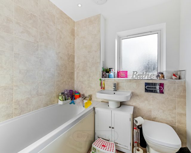 To the first floor, the property boasts three well-proportioned bedrooms. The principal bedroom benefits from a private en-suite shower room, while the remaining two double bedrooms are ideal for a growing family, guests or home working. A contemporary three-piece family bathroom completes the accommodation.