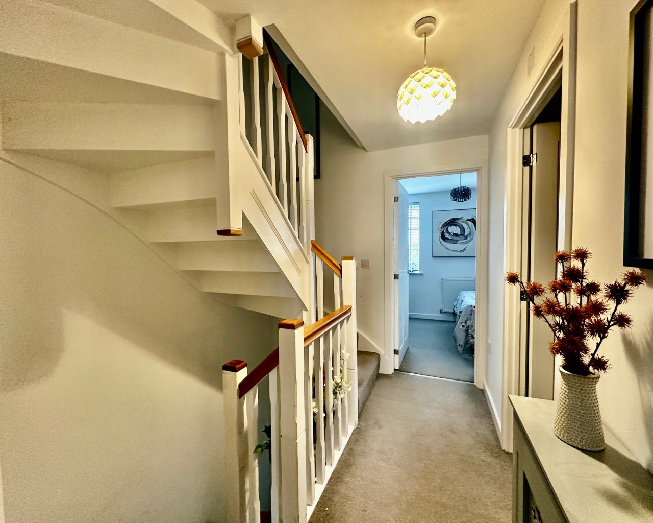 The first floor provides a beautifully bright living room, perfectly positioned as a quiet retreat from the main living areas, alongside one of the three double bedrooms. The upper floor is home to two further double bedrooms, including the main bedroom, served by modern bath/shower rooms, providing comfort and practicality for family life. With the home’s versatile layout, there is potential to create a fourth bedroom if desired.