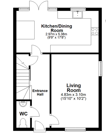 The ground floor features a generous and inviting lounge, ideal for relaxing or entertaining guests, alongside a convenient WC. To the rear, a spacious kitchen/diner provides the perfect hub of the home, with ample space for dining and direct access to the private rear garden—ideal for indoor-outdoor living.