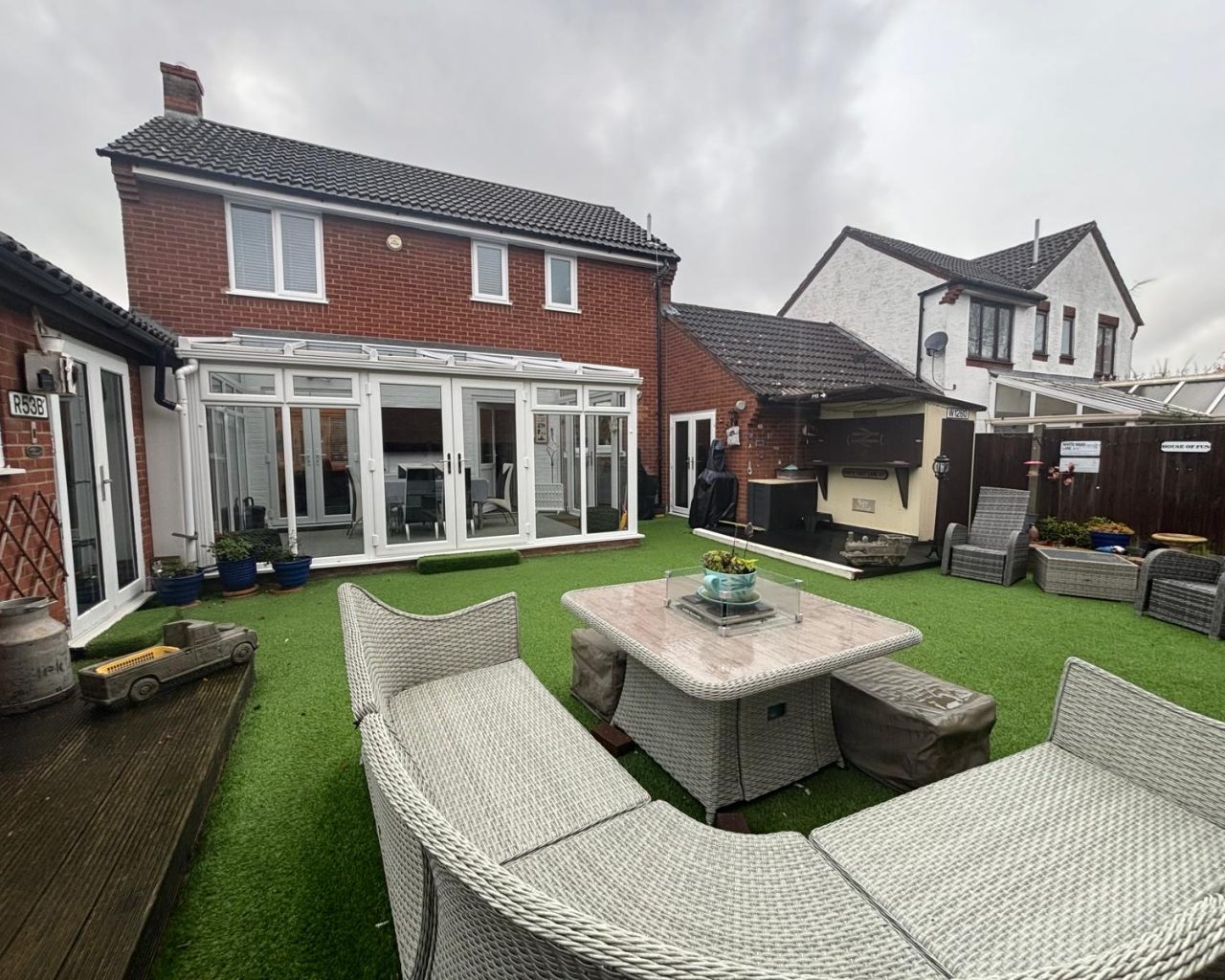 - Low-Maintenance Rear Garden featuring artificial lawn