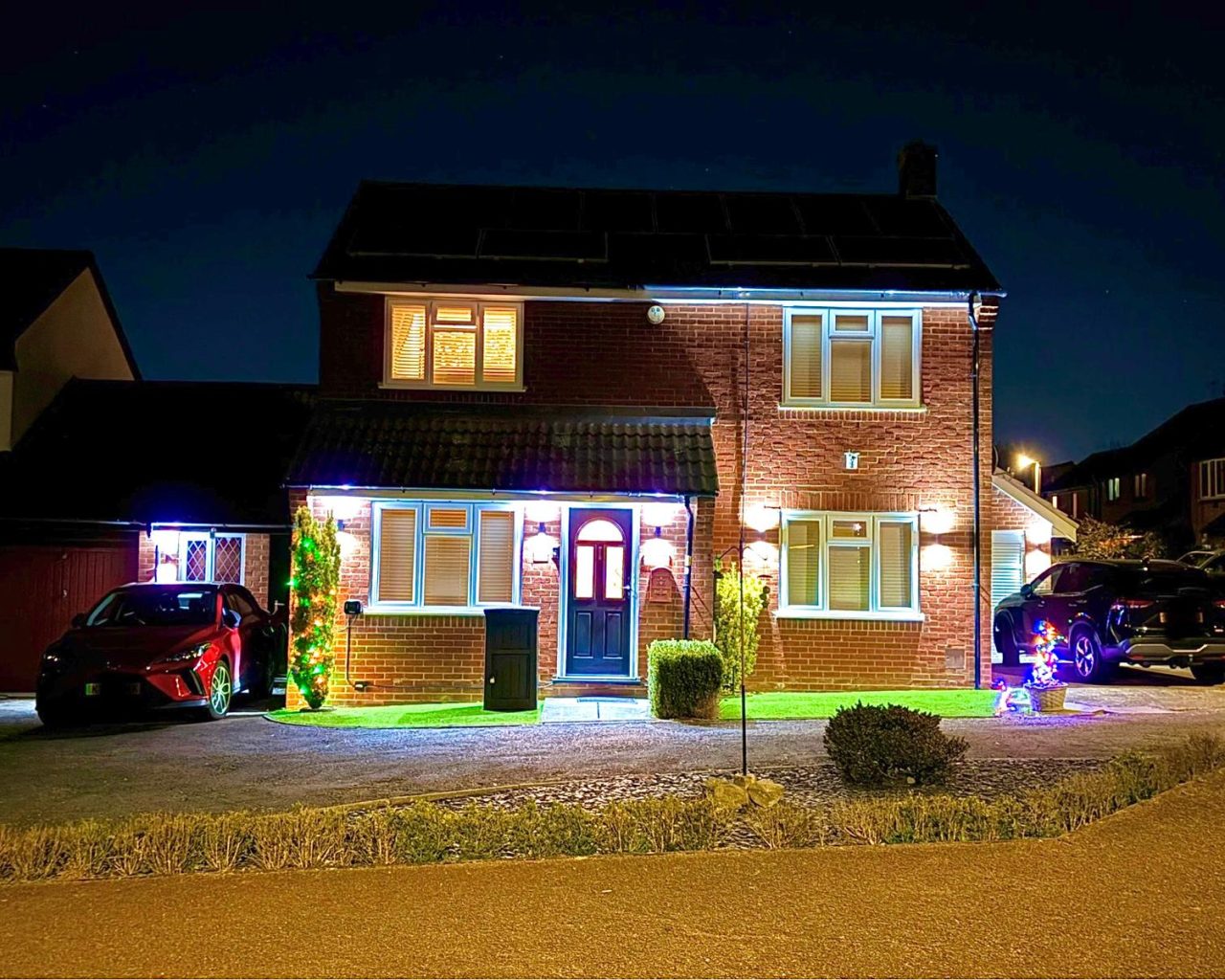 Beautifully Presented Three/Four Bedroom Detached Family Home – Emerson Valley Set within the highly sought-after area of Emerson Valley, this beautifully maintained three/four bedroom detached family home offers generous living space, excellent transport links, and close proximity to a wide range of local amenities and well-regarded schools. The property has been lovingly updated by the current owners and benefits from modern additions including a ‘Hive’ central heating system, solar panels, and an EV charging point. The original garage has been thoughtfully converted into a versatile home office or fourth bedroom, featuring double-glazed doors to the front and rear, spotlights, and built-in storage. A second, newly built larger garage offers an electric up-and-over door, power, lighting, and an apex roof providing additional storage space. Inside, the home opens with a welcoming entrance hall complete with a useful storage cupboard and access to both the living room and the kitchen/dining room. The spacious kitchen/dining area features an attractive range of wood-effect wall and base units with contrasting worktops, a ‘Belling’ range cooker with extractor over, an integrated fridge freezer, and stylish splashback tiling. Dual aspect windows fill the room with natural light, creating a perfect space for family meals and entertaining. The living room enjoys a large window to the front and French doors opening into the conservatory, providing a seamless flow of light and space. The conservatory itself is a delightful addition with full-height glazing, a glass roof, and double French doors leading out to the rear garden—ideal for enjoying the outdoors year-round. Completing the ground floor is a guest cloakroom fitted with a modern two-piece suite and vanity unit. Upstairs, the property offers three well-proportioned bedrooms and a modern family bathroom. The primary bedroom includes a range of fitted wardrobes and storage units. Bedroom two is another generous double with built-in wardrobes, while bedroom three provides a comfortable single room or nursery. The family bathroom features a fully tiled finish with a bath and shower over, vanity unit, and heated towel rail. Outside, the rear garden has been designed for low maintenance with artificial lawn, two decked seating areas, and a charming wooden bar area—perfect for entertaining friends and family. There’s also convenient access to the home office and garage via courtesy doors. The front of the property offers further artificial lawn, planting, and off-road parking for two vehicles—one leading to the garage and one to the converted office/bedroom. This property combines style, practicality, and energy efficiency, making it an ideal family home in one of Milton Keynes’ most desirable locations.