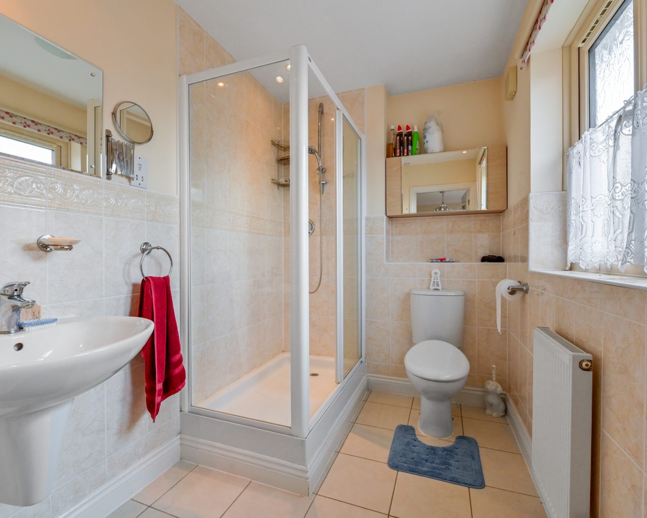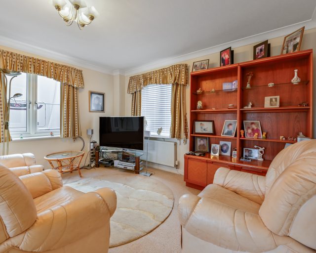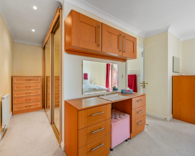 The generously sized lounge is filled with natural light and features French doors opening out to the low-maintenance, south-facing rear garden, which also includes gated side access to the single garage. Upstairs, you'll find four well-proportioned bedrooms. The main bedroom benefits from built-in wardrobes and a stylish en-suite shower room. The family bathroom is a true luxury space with a five-piece suite, including a separate shower, bath, and bidet.