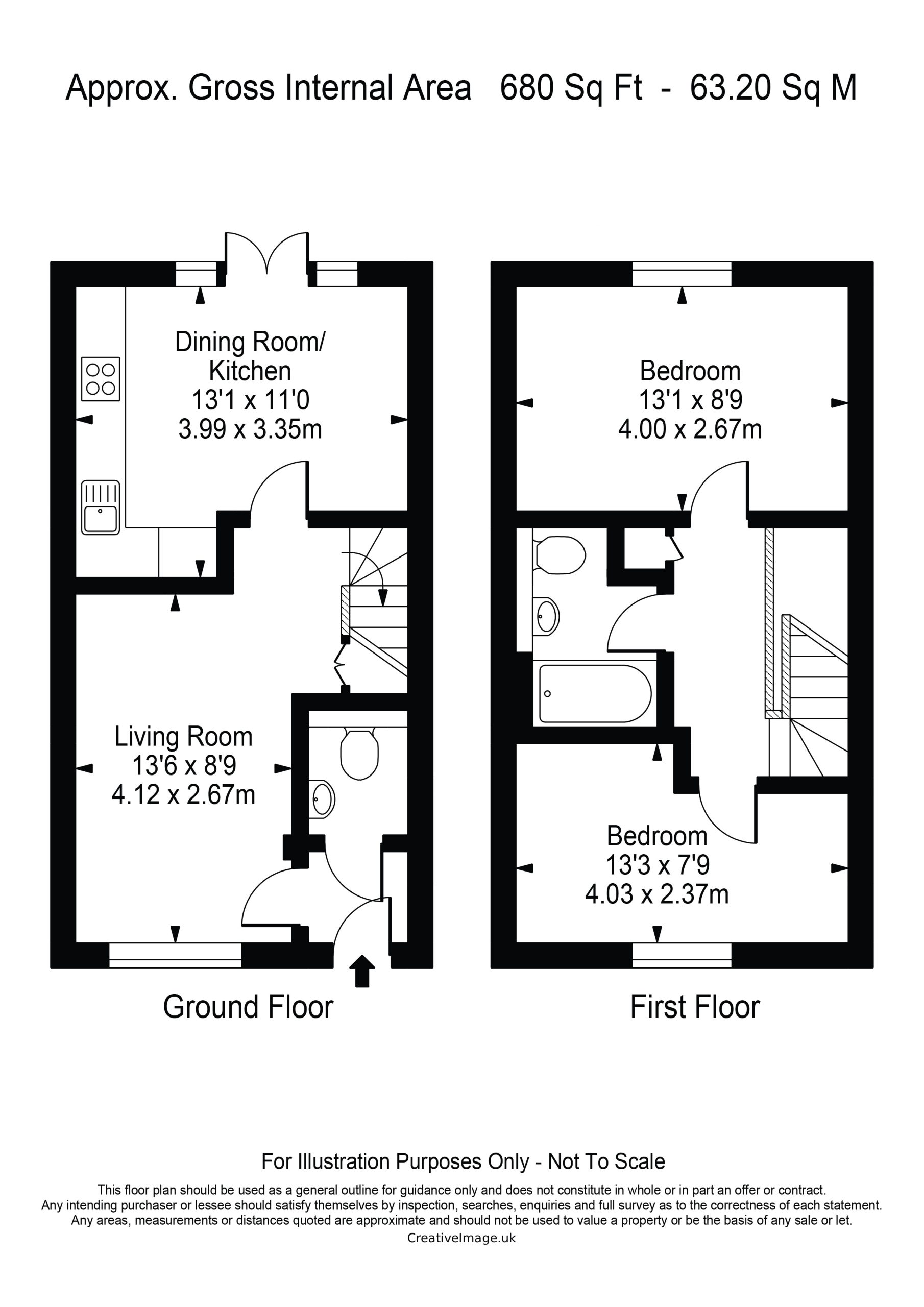 The accommodation briefly comprises: a welcoming entrance hall, downstairs cloakroom, a modern kitchen/diner, and a spacious sitting room. On the first floor, there are two well-proportioned bedrooms, with the master bedroom benefiting from built-in wardrobes, plus a stylish family bathroom. There is also loft access providing additional storage.