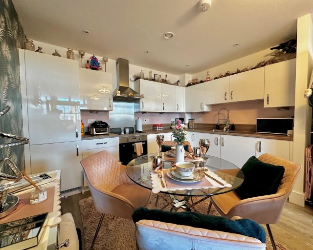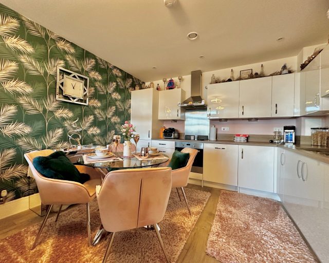 The apartment itself is tastefully decorated and immaculately maintained throughout, creating a stylish yet comfortable living space. The open-plan lounge, diner, and kitchen is generously sized and flooded with natural light, making it perfect for both relaxing and entertaining. The modern kitchen is finished to a high standard and is equipped with integrated appliances, offering both practicality and sleek design. From the lounge, doors lead out to a private balcony, providing a lovely outdoor space to enjoy.