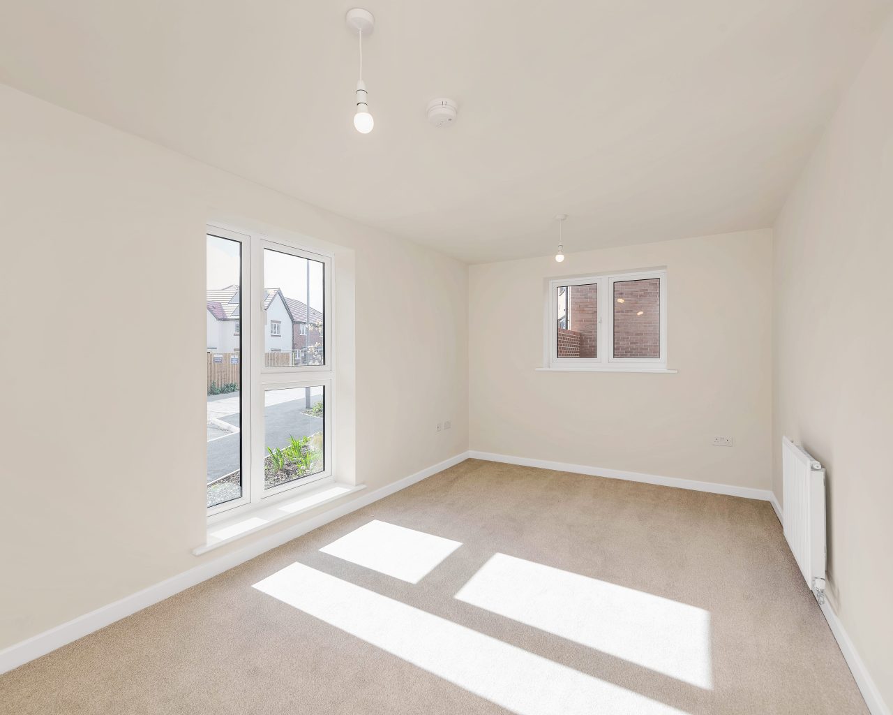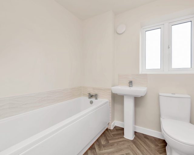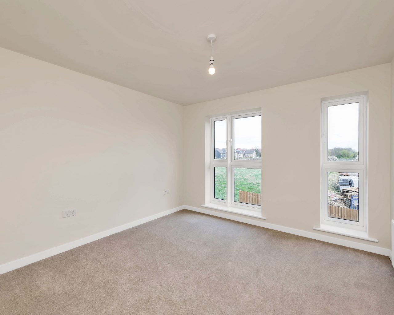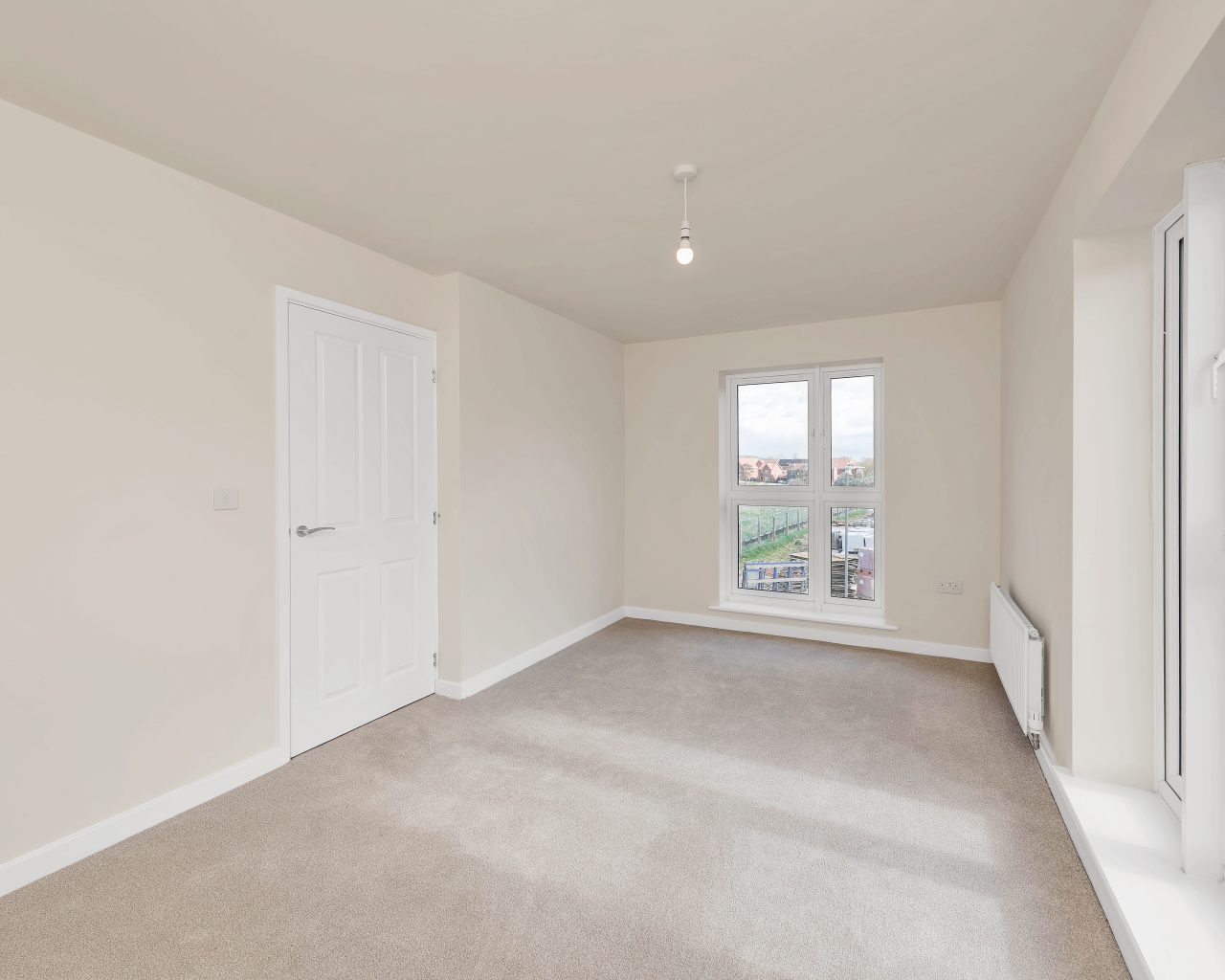 To the left, the well-proportioned lounge provides a comfortable and relaxing space for everyday living, while to the right, the contemporary kitchen/diner forms the heart of the home. Designed with both style and practicality in mind, it boasts integrated appliances and ample space for dining, with direct access to the garden—ideal for entertaining and enjoying indoor-outdoor living.