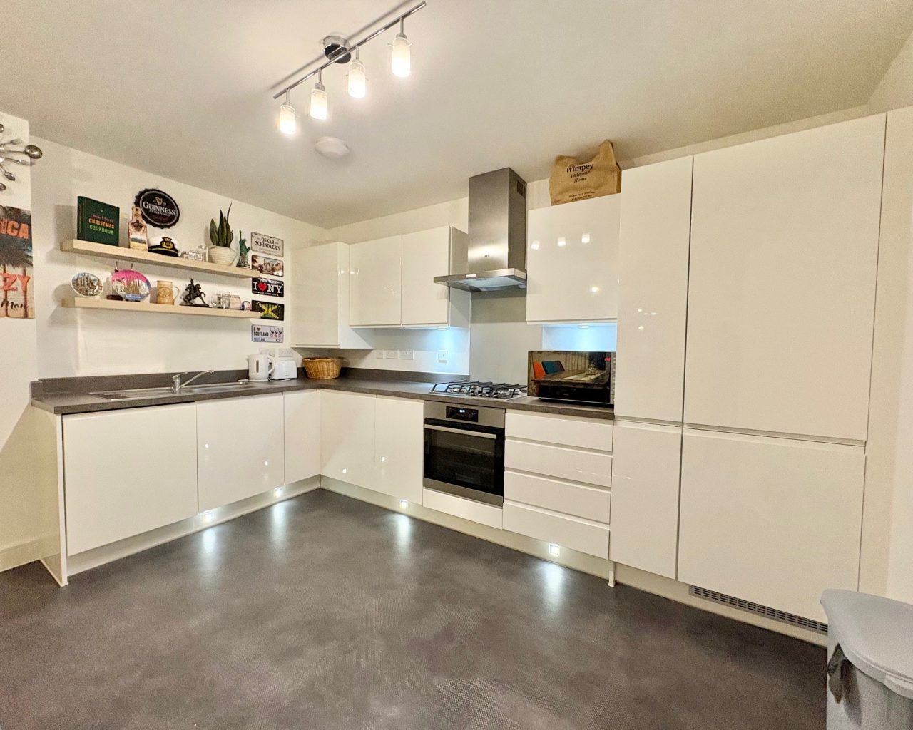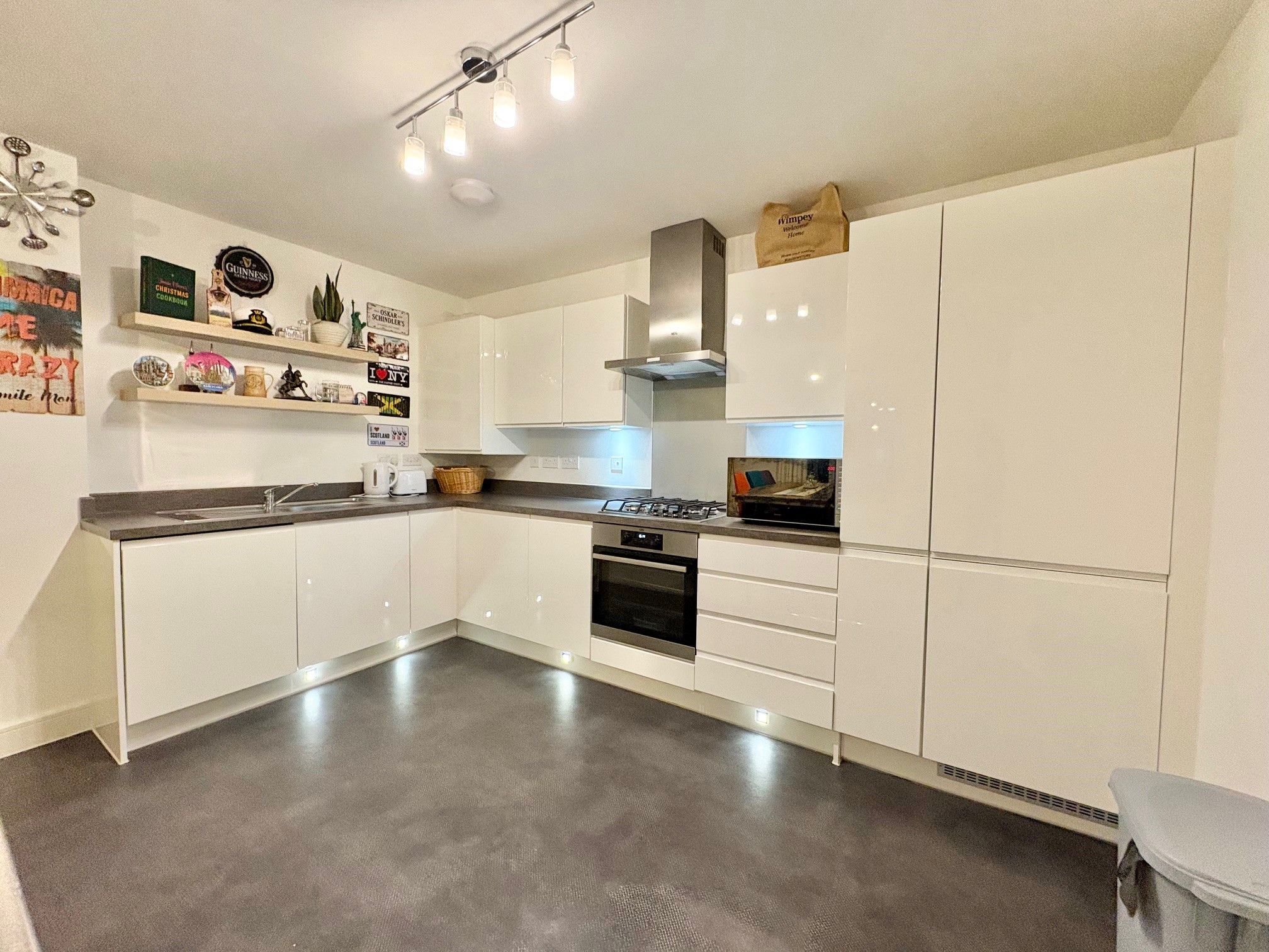 Nestled in the desirable and well-connected area of Bletchley, this beautifully presented two-bedroom, two-bathroom first-floor apartment offers modern living in a peaceful residential setting. Galapagos Grove is ideally located close to a range of local amenities, schools, and parks, with excellent transport links into Central Milton Keynes and London via Bletchley Station — making it perfect for commuters and families alike. Step inside and you’ll find a bright, well-proportioned open-plan lounge, dining, and kitchen area designed with both comfort and practicality in mind. The French doors open onto a Juliet balcony providing a lovely airy feel. The modern kitchen comes fully integrated with an oven, hob, extractor fan, and fridge-freezer, complemented by stylish under-cupboard spotlights that create a warm and inviting atmosphere. The apartment features two generous double bedrooms. Bedroom One benefits from built-in wardrobes and a private ensuite with a sleek walk-in shower. Bedroom Two is generously sized, making it perfect for a guest room, home office, or a growing child’s bedroom. A contemporary three-piece family bathroom completes the apartment, offering both style and practicality. The property also benefits from one allocated parking space, providing added convenience for residents. Overall, this property is ideal for first-time buyers, small families or investors seeking a low-maintenance, ready-to-move-in home in a sought-after location. With its modern finish, thoughtful layout, and convenient setting, this apartment at Galapagos Grove truly offers a wonderful blend of comfort, style, and accessibility — a place you’ll love to call home.