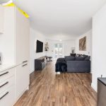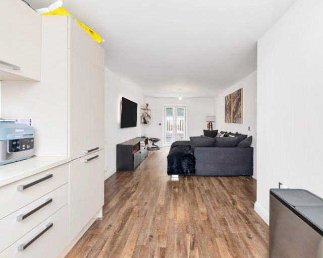 Off the entrance hall is bedrooms one and two,followed by the main bathroom , two generous storage cupboards and the spacious open plan living space with integrated appliances to include a fridge freezer, washing machine and gas hob with an oven. There are french doors to the garden allowing for lots of natural light.