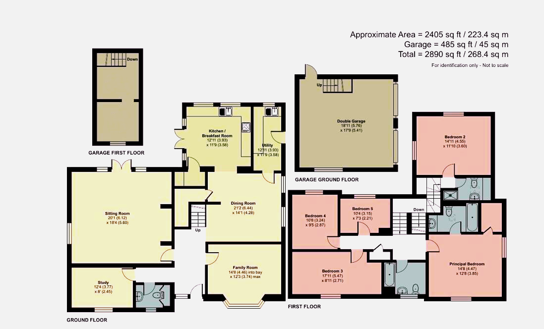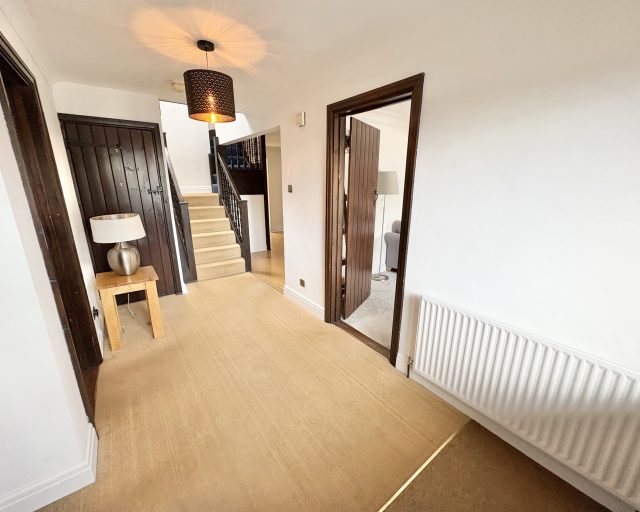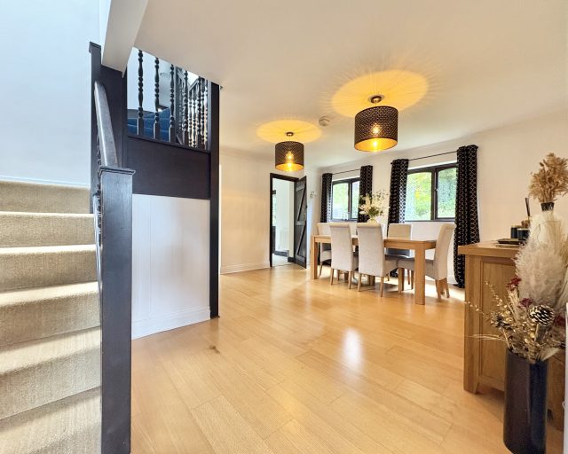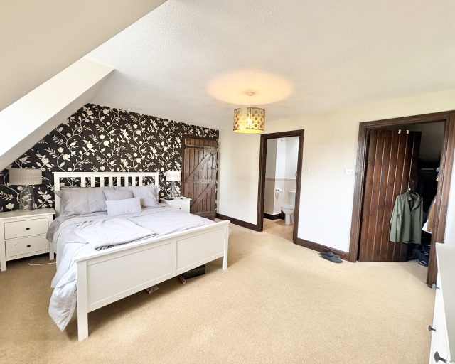 First Floor Upstairs, the principal bedroom benefits from dual-aspect windows, a walk-in wardrobe, and a luxurious en suite bathroom. The second bedroom is also dual-aspect and includes eaves storage and its own en suite shower room. Three further well-proportioned bedrooms are served by a modern family bathroom with a shower over the bath.