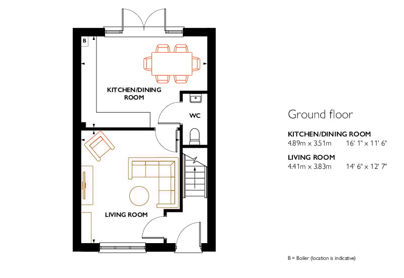 Kitchen/Dining Room 16' 1" x 11' 6" (4.90m x 3.51m) Living Room 14' 6" x 12' 7" (4.42m x 3.84m) Master Bedroom 16' 1" x 8' 11" (4.90m x 2.72m) Bedroom 2 10' 8" x 8' 7" (3.25m x 2.62m) Bedroom 3 7' 3" x 7' 2" (2.21m x 2.18m)