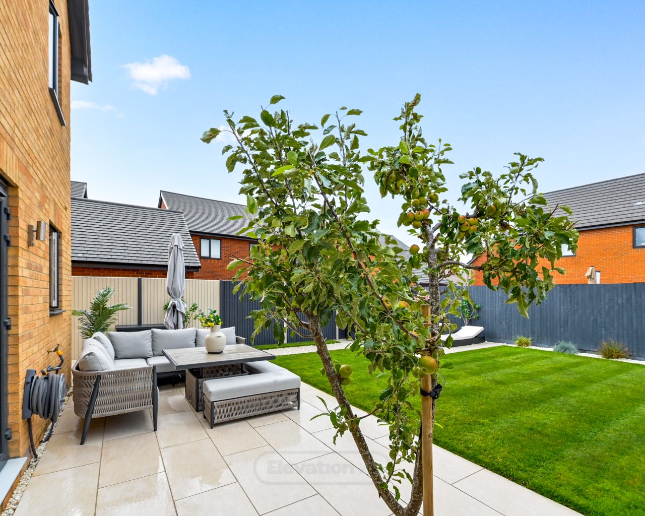 - Beautifully landscaped rear garden with two stylish patio areas – perfect for outdoor dining and entertaining
