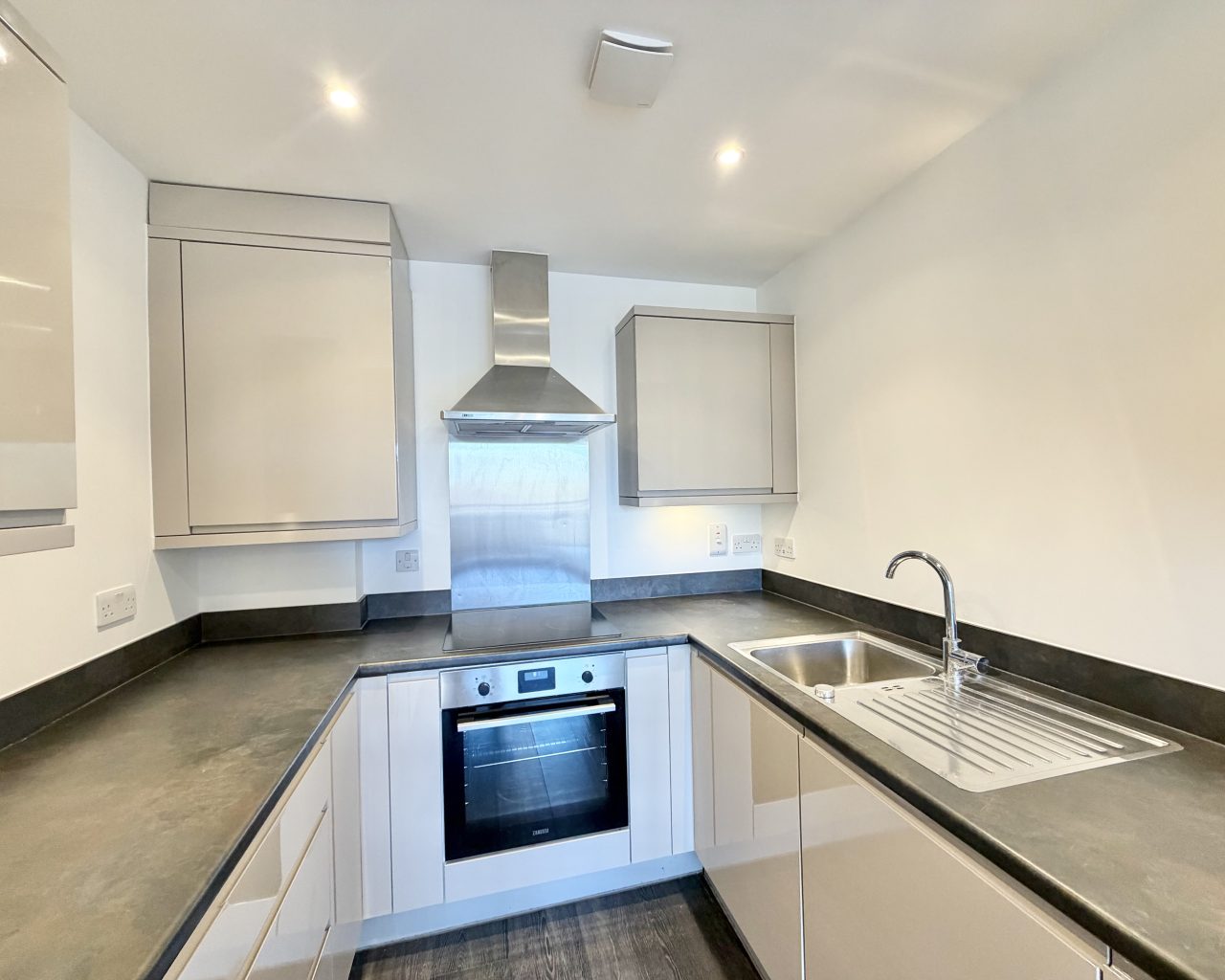 - Integrated kitchen appliances including dishwasher