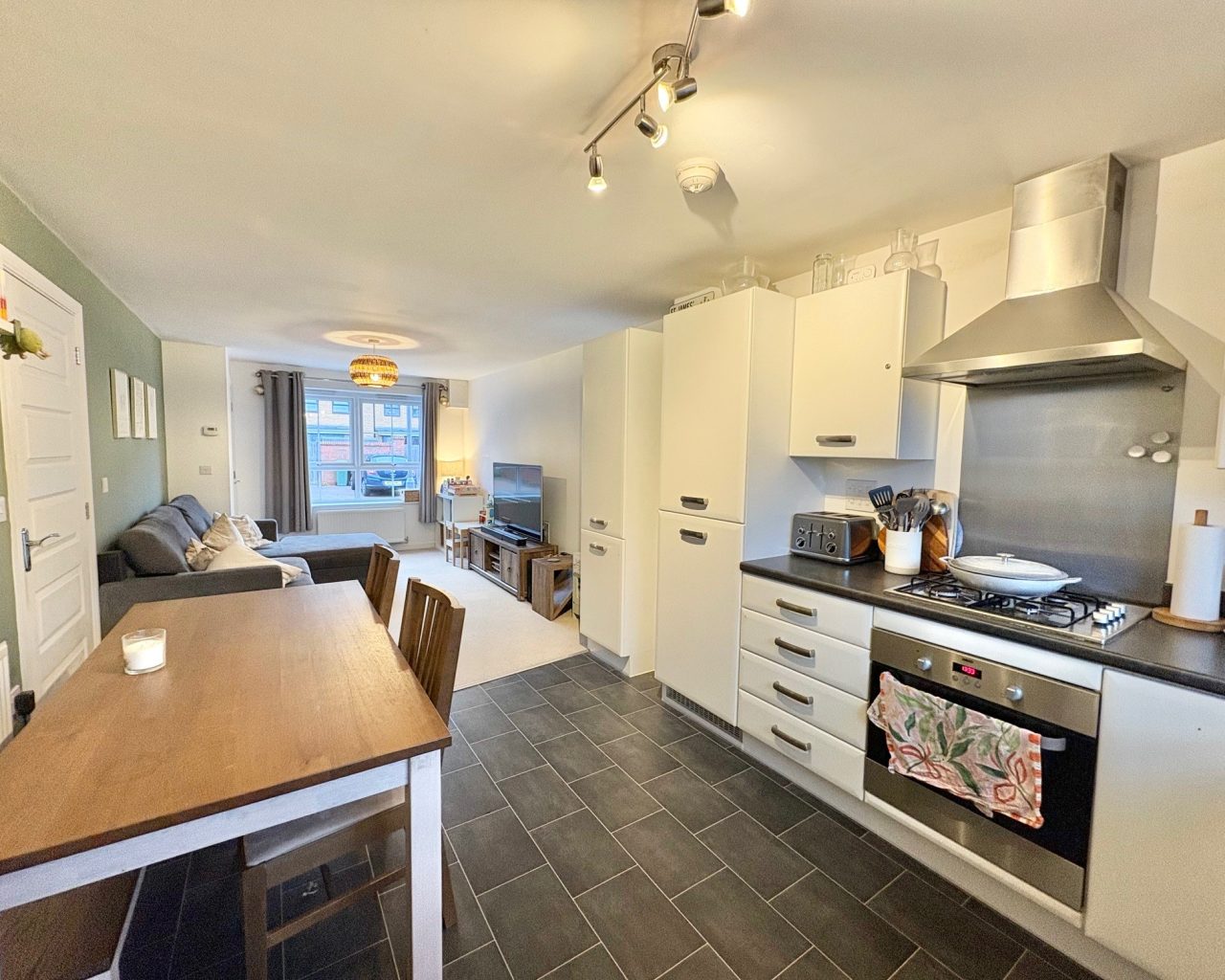- Open-plan living, kitchen, and dining area