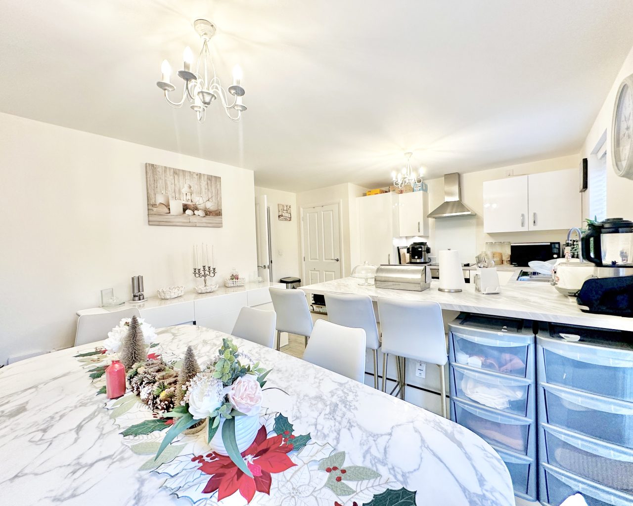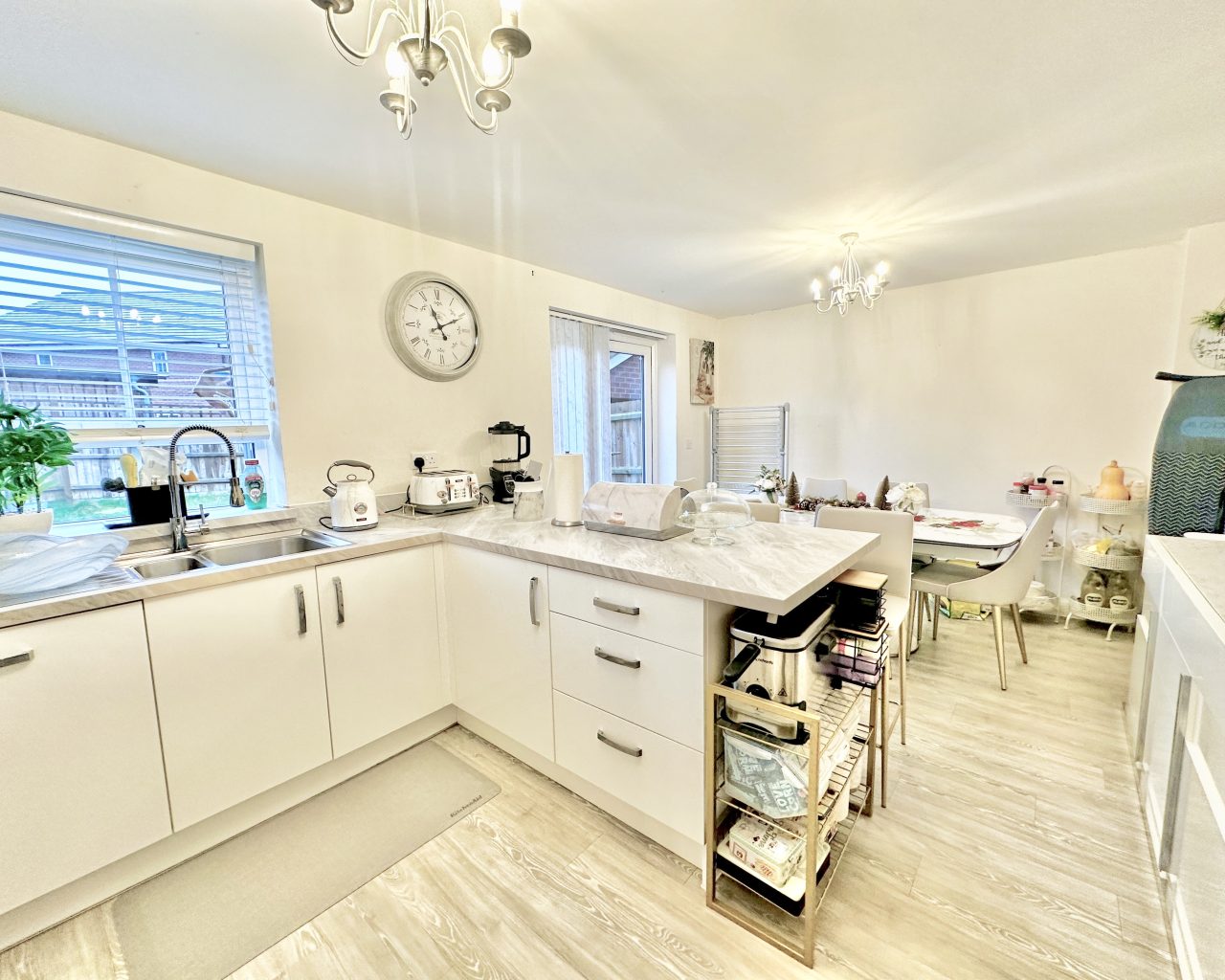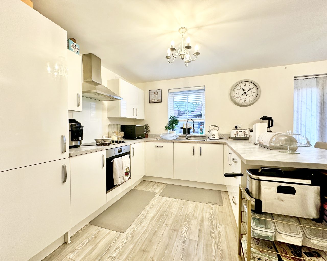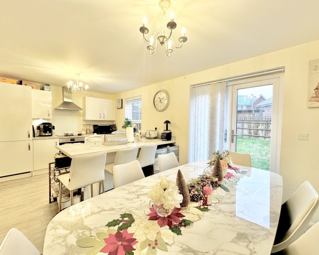 Stepping inside, you’re welcomed by a convenient ground-floor W/C—ideal for busy households and visiting guests. Beyond the hallway sits a spacious, beautifully presented lounge, offering a warm and comfortable environment perfect for relaxing evenings, social gatherings, or cozy family time. To the rear of the property is the heart of the home: a modern, well-designed kitchen/diner. This space features a selection of integrated appliances that make day-to-day living effortless, combining practicality with a sleek contemporary finish. The generous dining area is perfect for meals, entertaining, or working from home when needed. Double doors open out onto the rear garden, allowing natural light to pour in and creating a seamless indoor–outdoor flow—ideal for summer dining, children playing, or simply enjoying your own private outdoor space.