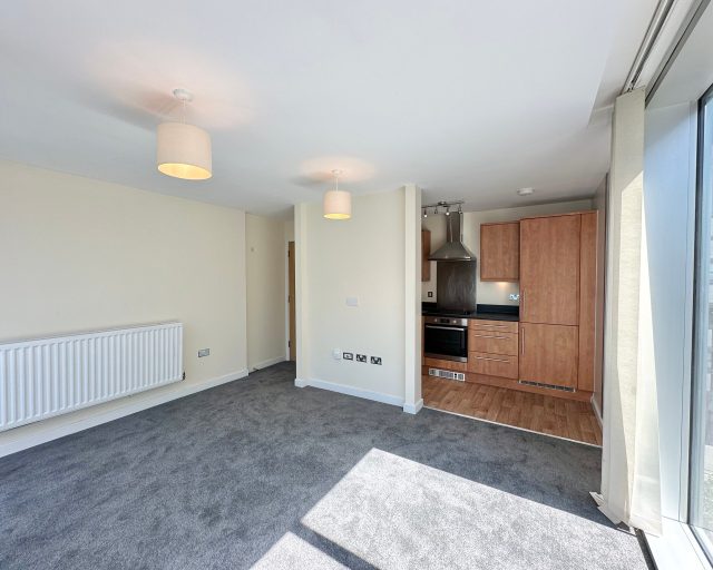 Apartment in Brooklyn House, The Hub. The accommodation comprises entrance hall with utility cupboard, lounge with stylish fitted kitchen and built in appliances. Two DOUBLE bedrooms and bathroom suite.