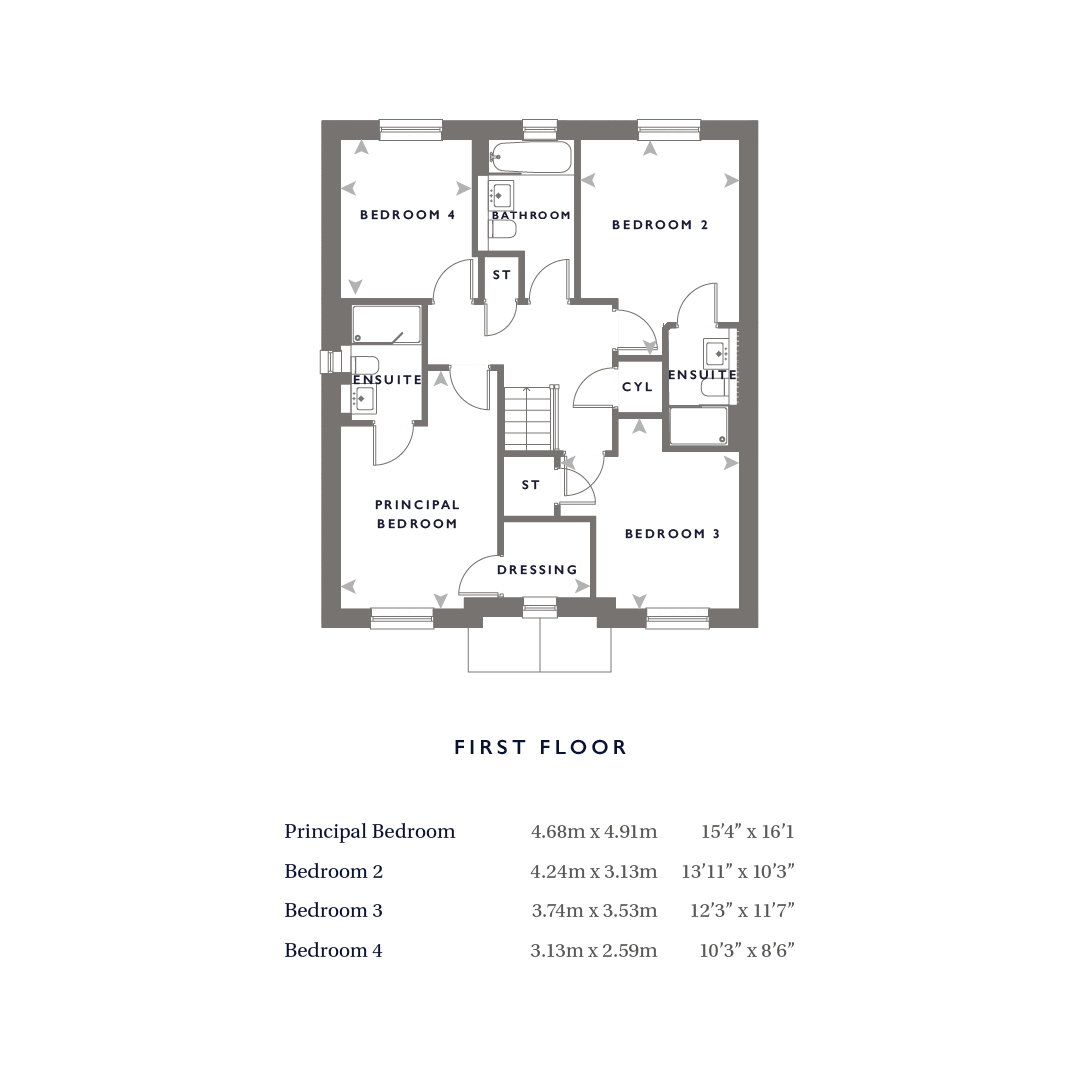 The first floor continues to impress with four generously proportioned double bedrooms. The principal suite has been designed as a luxurious private retreat, featuring a walk-in dressing room and stylish en-suite shower room. Bedroom two also benefits from its own en-suite, while the remaining bedrooms are served by a contemporary family bathroom finished to a high specification.