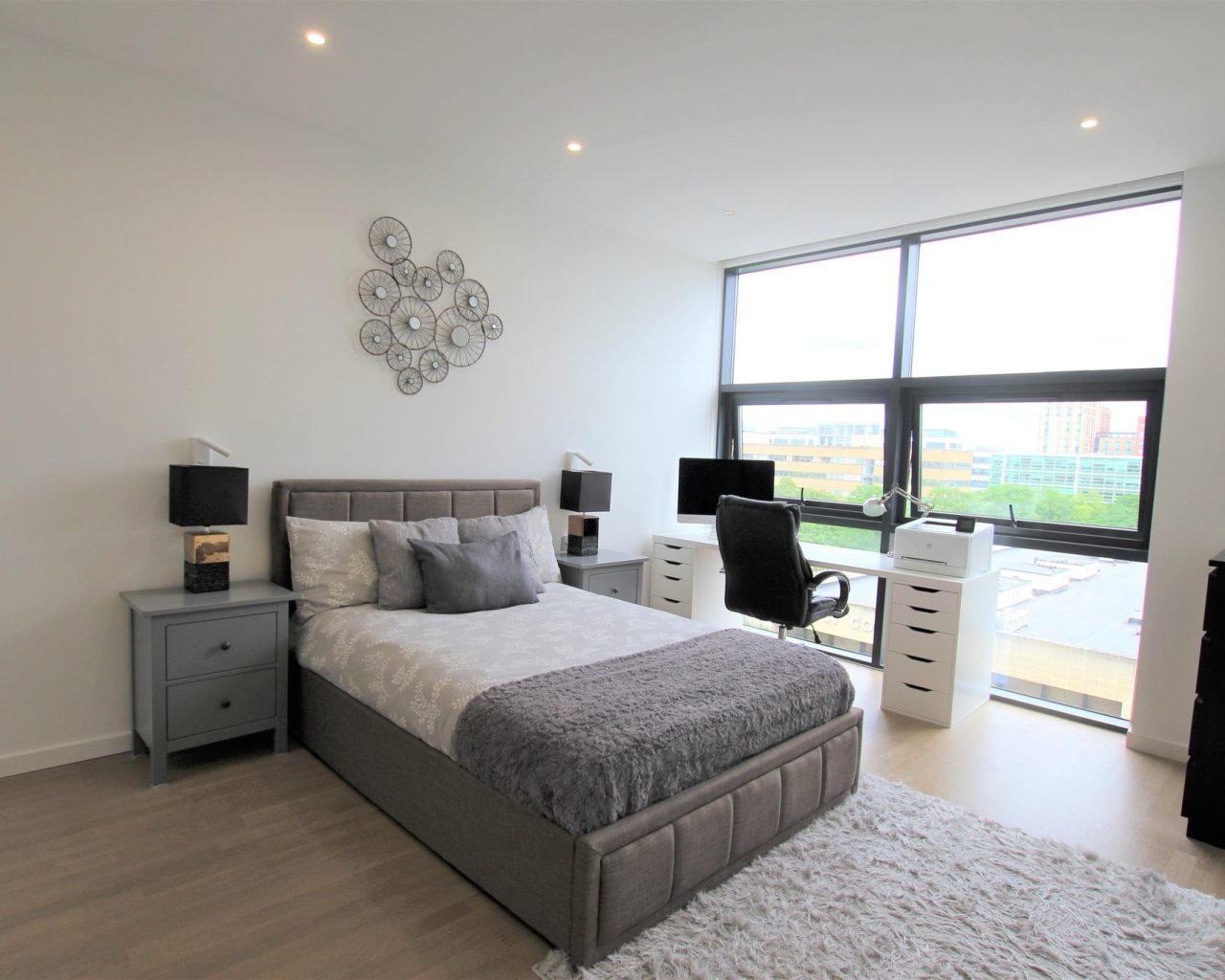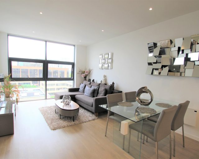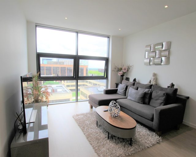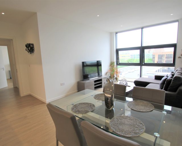 Rarely available executive two bedroom furnished apartment in the heart of Central Milton Keynes, located in the Medina House development. This property is located on the fifth floor and comprises of entrance hall, open plan kitchen/ living room, spacious master bedroom with en suite, second double bedroom and family bathroom.