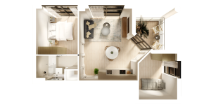 - Open plan living area