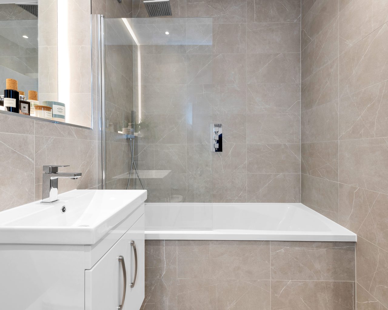 Both the en-suite and main bathroom are fully tiled from floor to ceiling and finished to a high standard, each featuring a large illuminated wall mirror and a heated towel rail, adding a touch of luxury to everyday living.