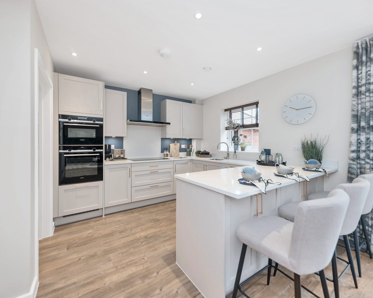 Upstairs, the property continues to impress with four generous double bedrooms. The principal bedroom and bedroom two both enjoy fitted wardrobes and stylish en-suite shower rooms. Bedrooms three and four are served by a contemporary family bathroom finished to a high standard.