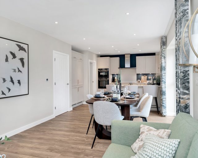 Upon entering, a welcoming and spacious hallway creates an immediate sense of light and quality. Positioned at the front of the home is a private study, perfect for home working, along with a well-proportioned living room measuring over 15ft – an inviting retreat for relaxing evenings.