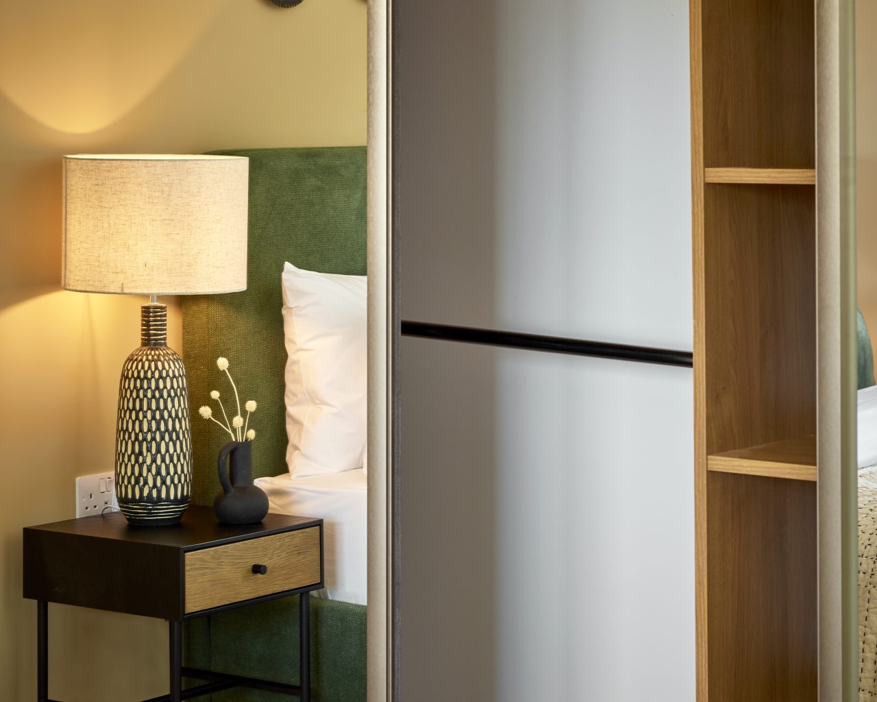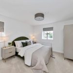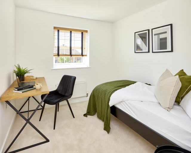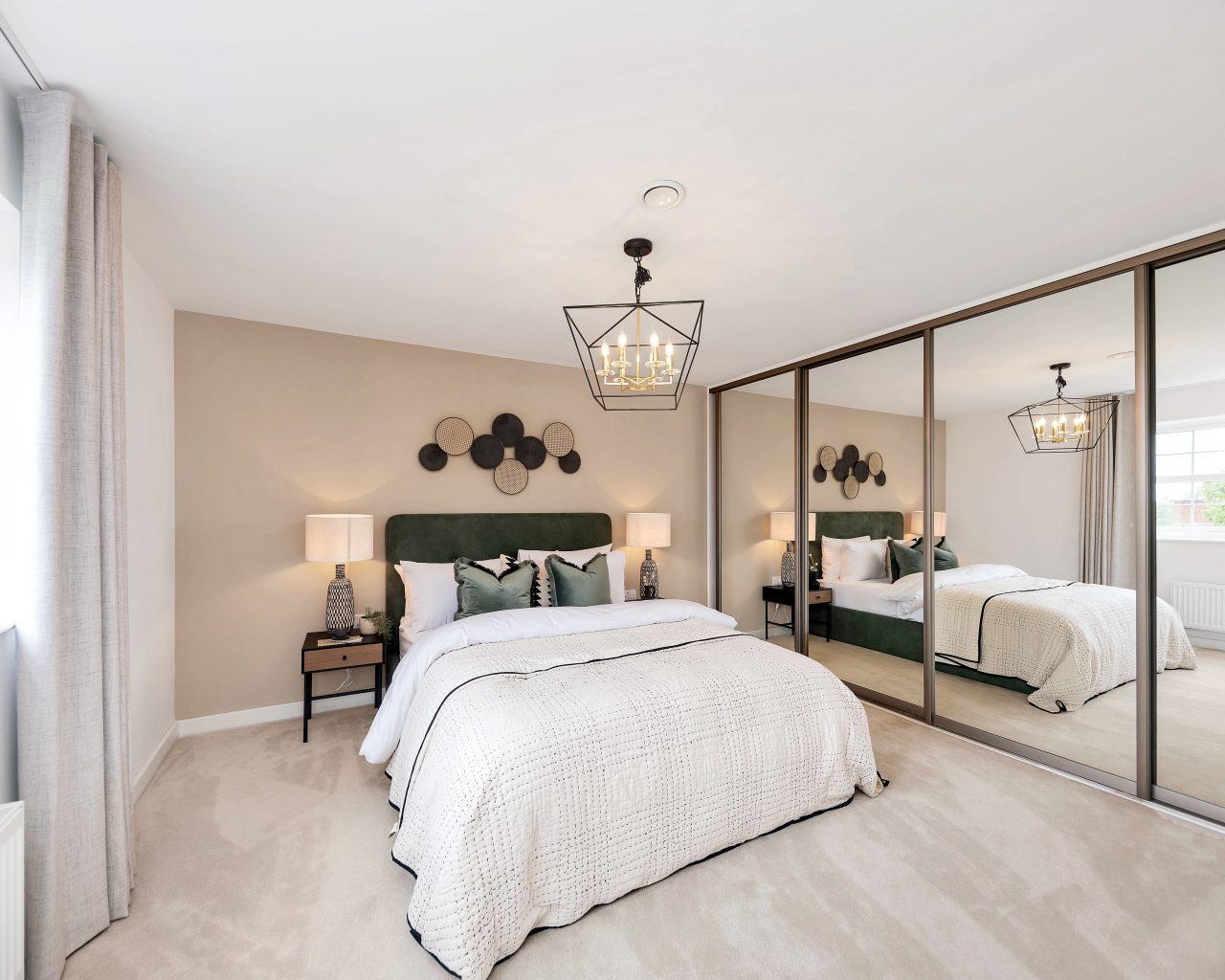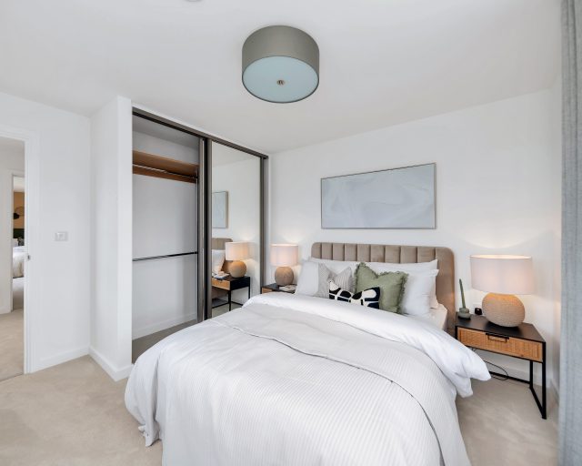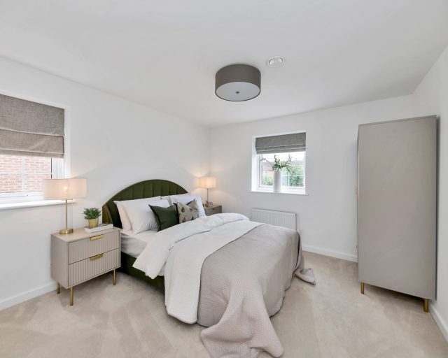 The principal bedroom is a standout feature of the home, offering a stylish and peaceful sanctuary complete with a full wall of fitted wardrobes and a private en-suite bathroom.