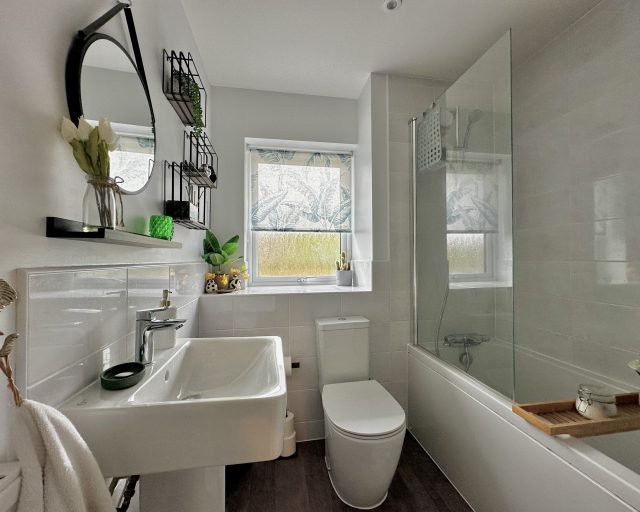Upstairs boasts two well-proportioned double bedrooms, including a spacious master with en-suite shower room, as well as a contemporary family bathroom.
