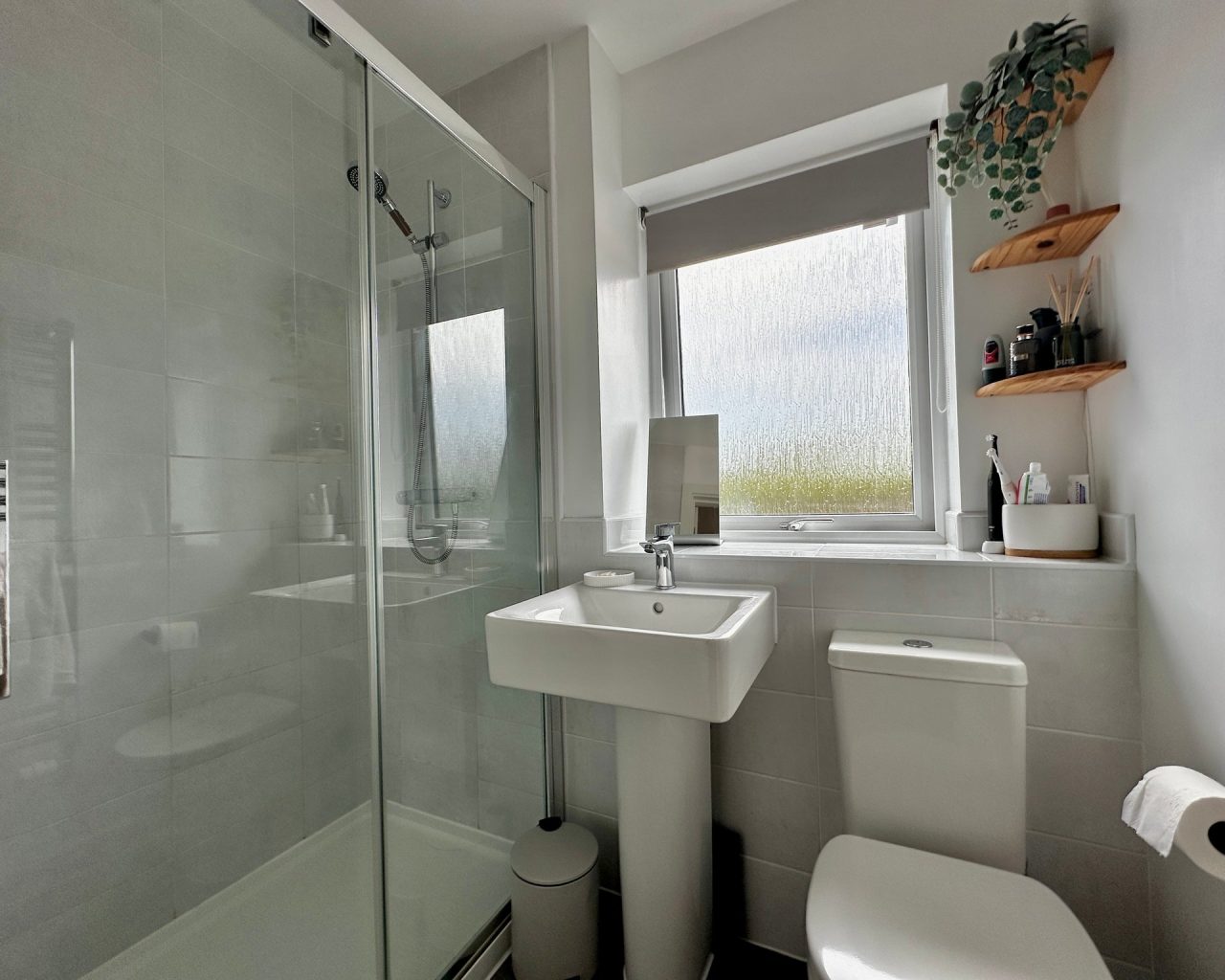 Upstairs boasts two well-proportioned double bedrooms, including a spacious master with en-suite shower room, as well as a contemporary family bathroom.