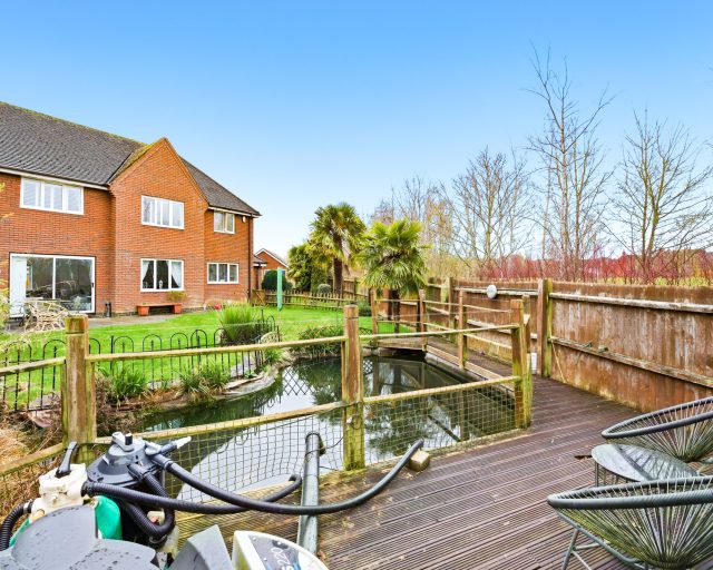 One of the standout features of this home is the beautiful wrap-around private garden, predominantly laid to lawn with a patio seating area — perfect for summer entertaining. A charming feature pond adds character and tranquillity to the outdoor space. To the front and side, the property benefits from driveway parking for multiple vehicles and a double garage, providing excellent storage or additional parking options.