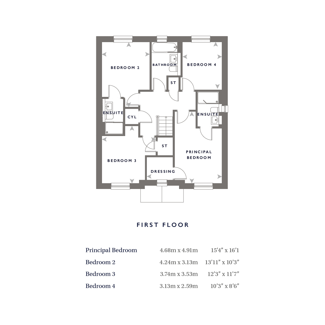 The first floor offers four generously sized double bedrooms. The principal suite provides a luxurious sanctuary with a spacious walk-in dressing room and contemporary en-suite shower room. Bedroom two also benefits from its own en-suite, while the remaining bedrooms are served by a stylish family bathroom.