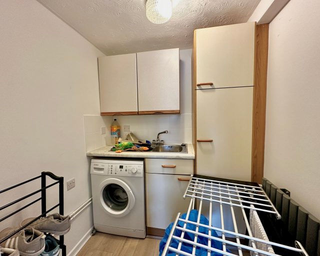 Inside, the home comprises a spacious lounge/diner, a fitted kitchen, a separate utility room, a double bedroom, and a bathroom. Externally, the property features a private rear garden—perfect for relaxing or entertaining—and a driveway to the front offering off-road parking.
