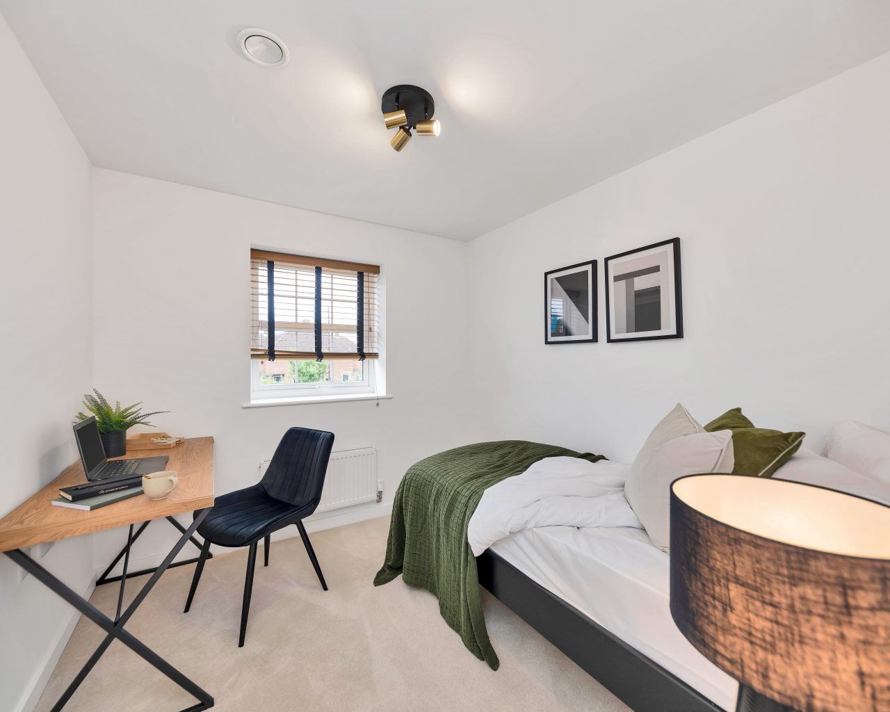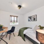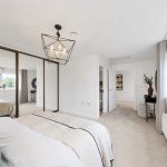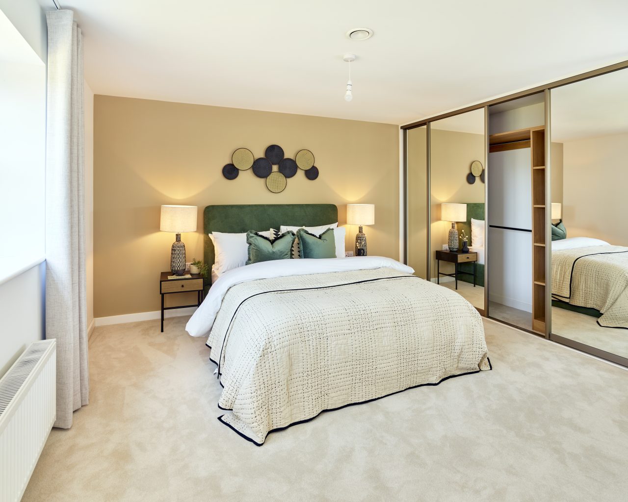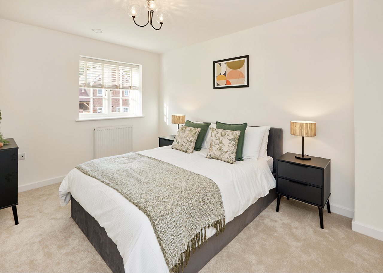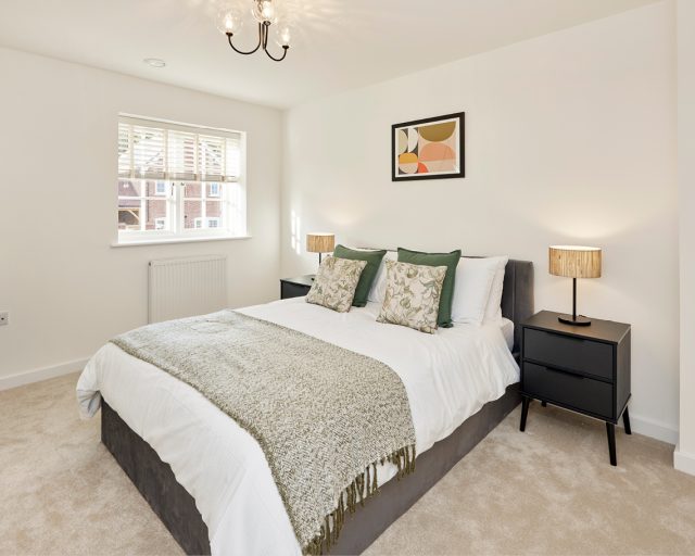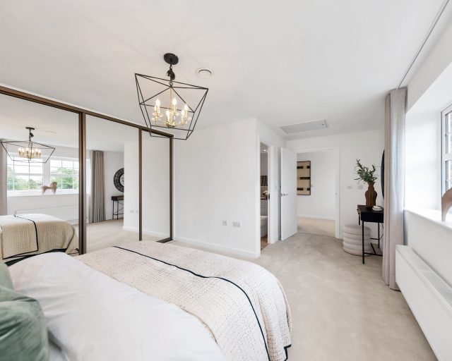The principal bedroom is a standout feature of the home, offering a stylish and peaceful sanctuary complete with a full wall of fitted wardrobes and a private en-suite bathroom.