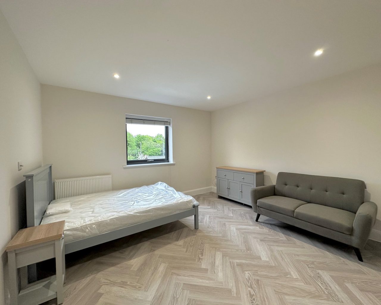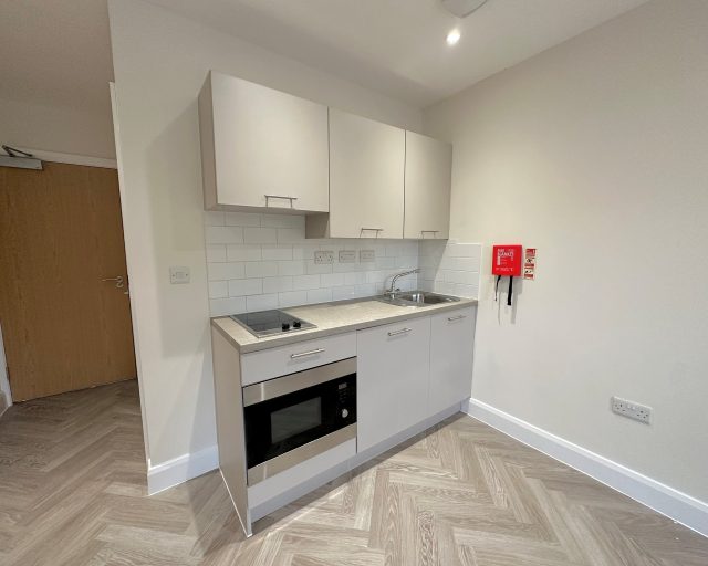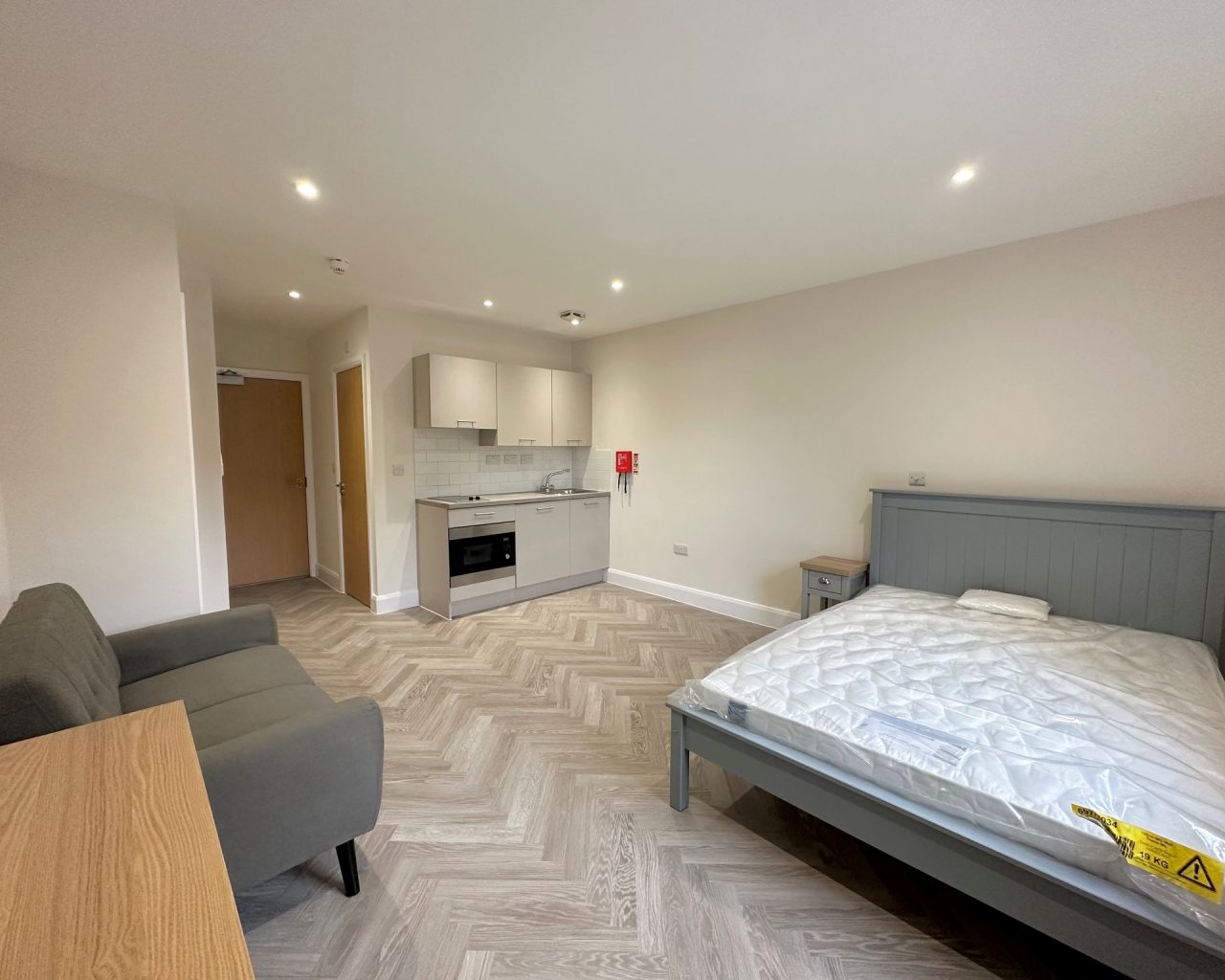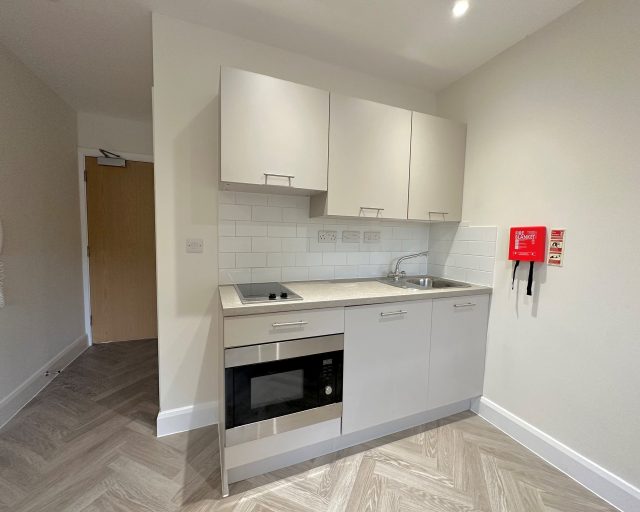 Spacious accommodation that offers studio open-plan lounge and bedroom, with built in wardrobe and adjacent stylish en-suite shower room. Modern fitted kitchen with built-in appliances. Outside, are landscaped communal areas and private residents off-road parking. Each property benefits from a convenient fixed monthly service charge for the supply and use of electricity, water, and WiFi (for social use only) for only £150.00pcm