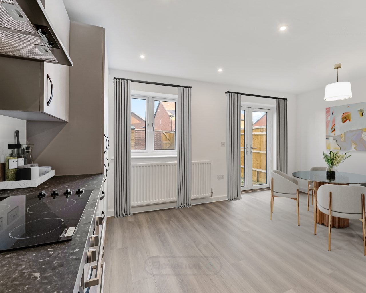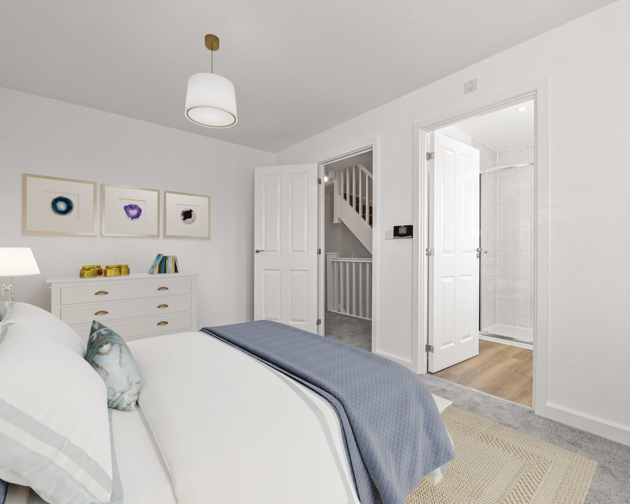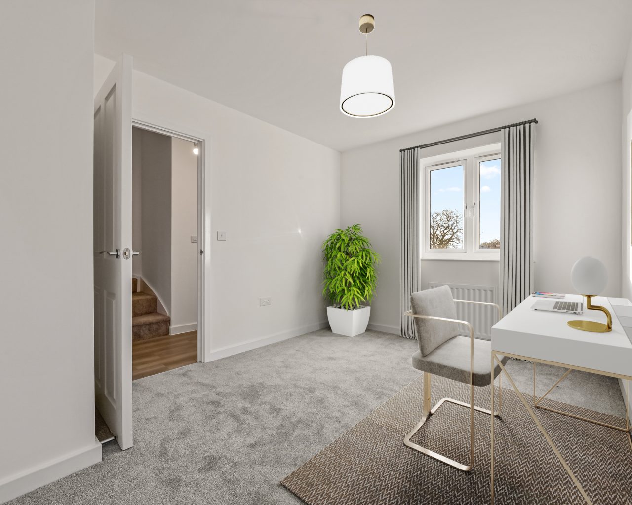 The Hexham by Crest Nicholson is a versatile three-storey, four-bedroom home designed for modern family living. The ground floor features an open-plan kitchen and dining area with French doors to the garden, alongside a separate living room/ study and cloakroom. On the first floor, there is a spacious main bedroom with an en-suite and fitted wardrobe, plus a second reception room or additional bedroom. The top floor offers three further bedrooms and a family bathroom, providing flexible space for children, guests, or a home office. With thoughtful storage, integrated kitchen appliances, and energy-efficient features, the Hexham combines practicality with contemporary comfort.